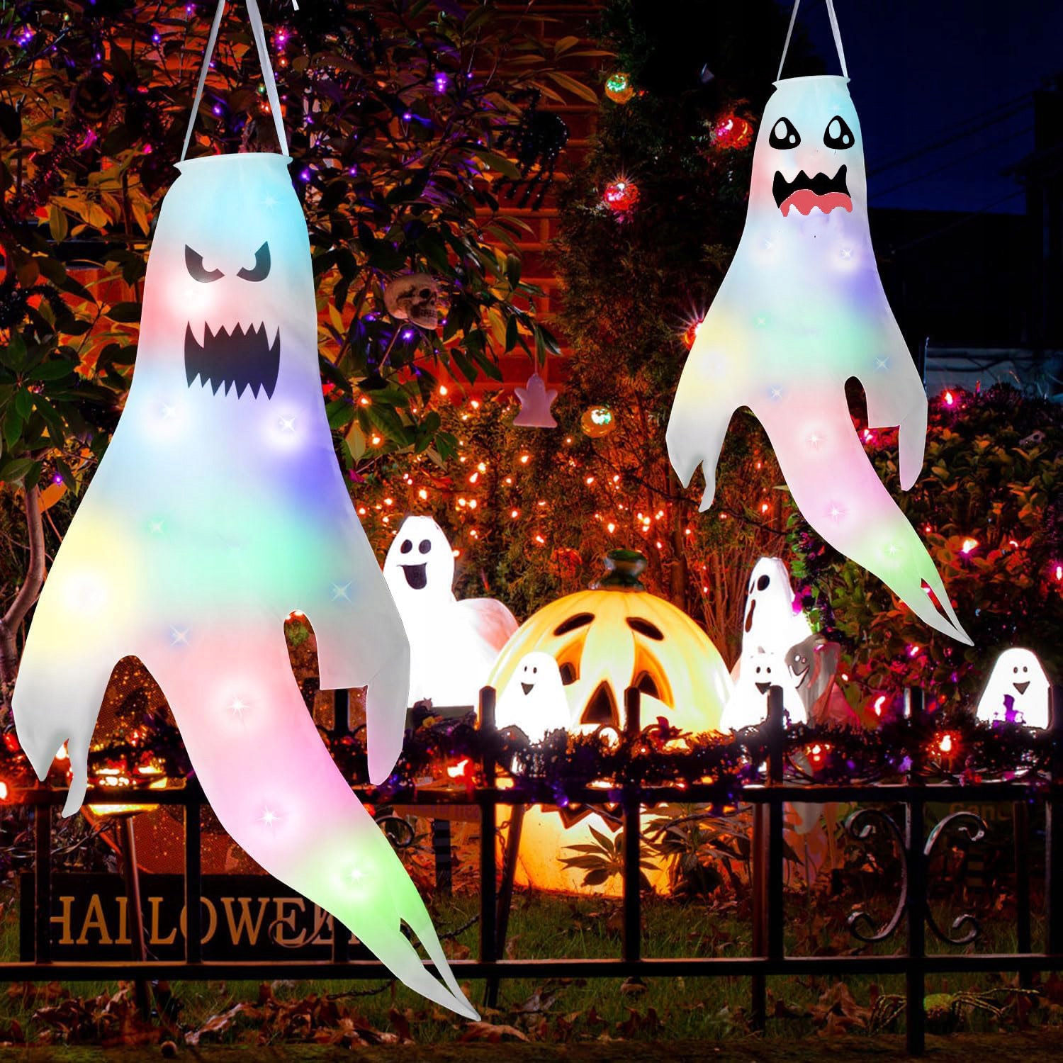Улучшите свой декор на Хэллоуин с помощью наших ветроуказателей-призраков! Очаровательные и пугающие выражения лица представлены в двух дизайнах размером примерно 50 x 119 см каждый, что создает эффектный внешний вид.