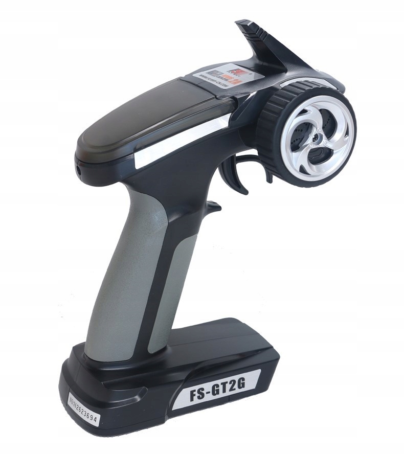 Flyshy FS-GT2G-это двухканальное пистолетное радио 2,4 ГГц. У него есть много вариантов и настроек как для начинающих, так и для более продвинутых моделей. Набор включает в себя 3-канальный приемник канала FS-A3. Радио имеет контрольный триммер (ST) и газовый триммер (TH) вместе с обратным. Двойная скорость позволяет настроить качание колес или руля во время поворота. Радио требует запуска 4 батареи AA.