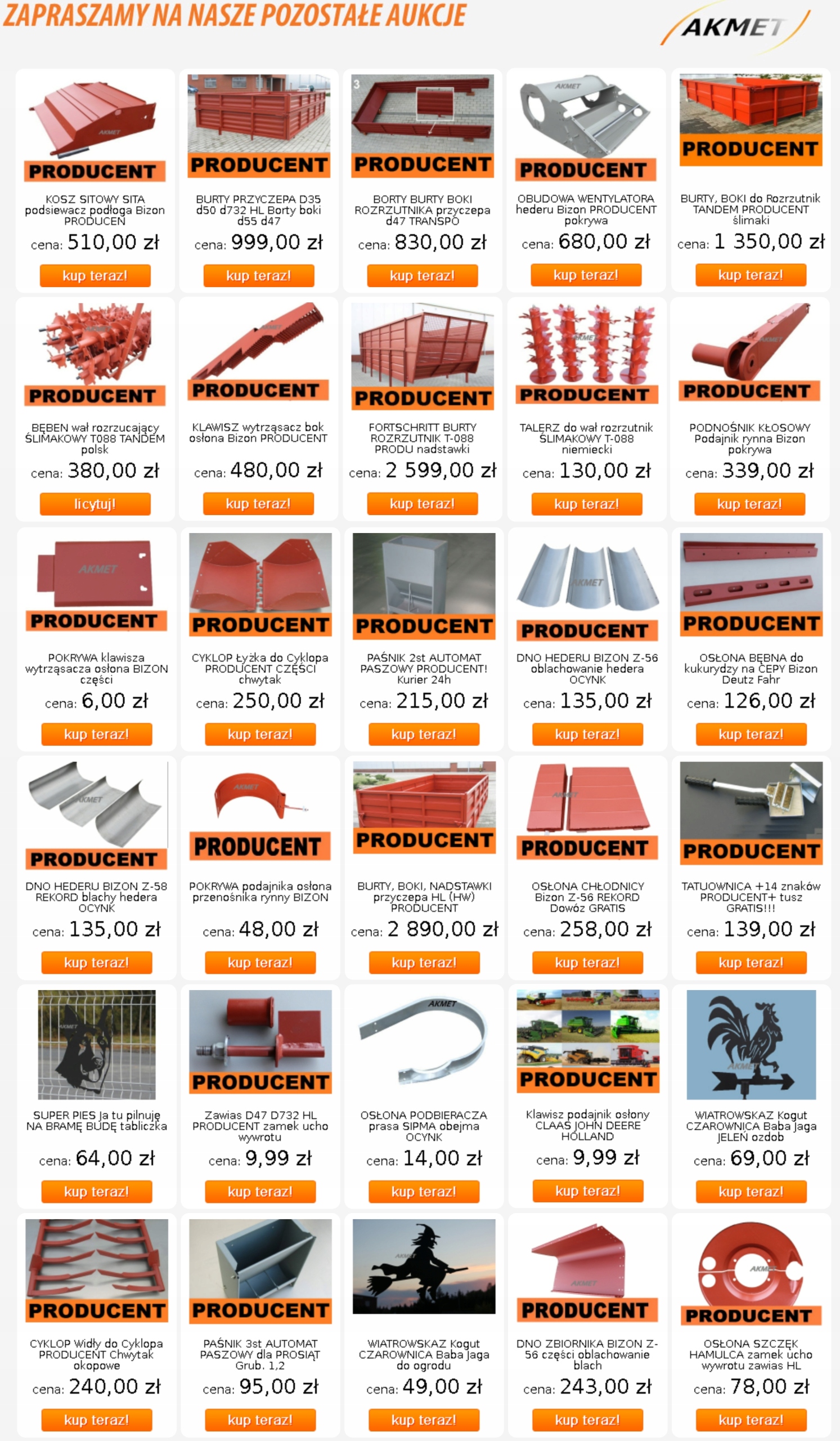 Мы также производим запасные части (профнастил) для польских и зарубежных зерноуборочных комбайнов. Систематически расширяемый ассортимент продукции включает более 200 наименований, благодаря чему наше предложение адресовано широкому кругу получателей.