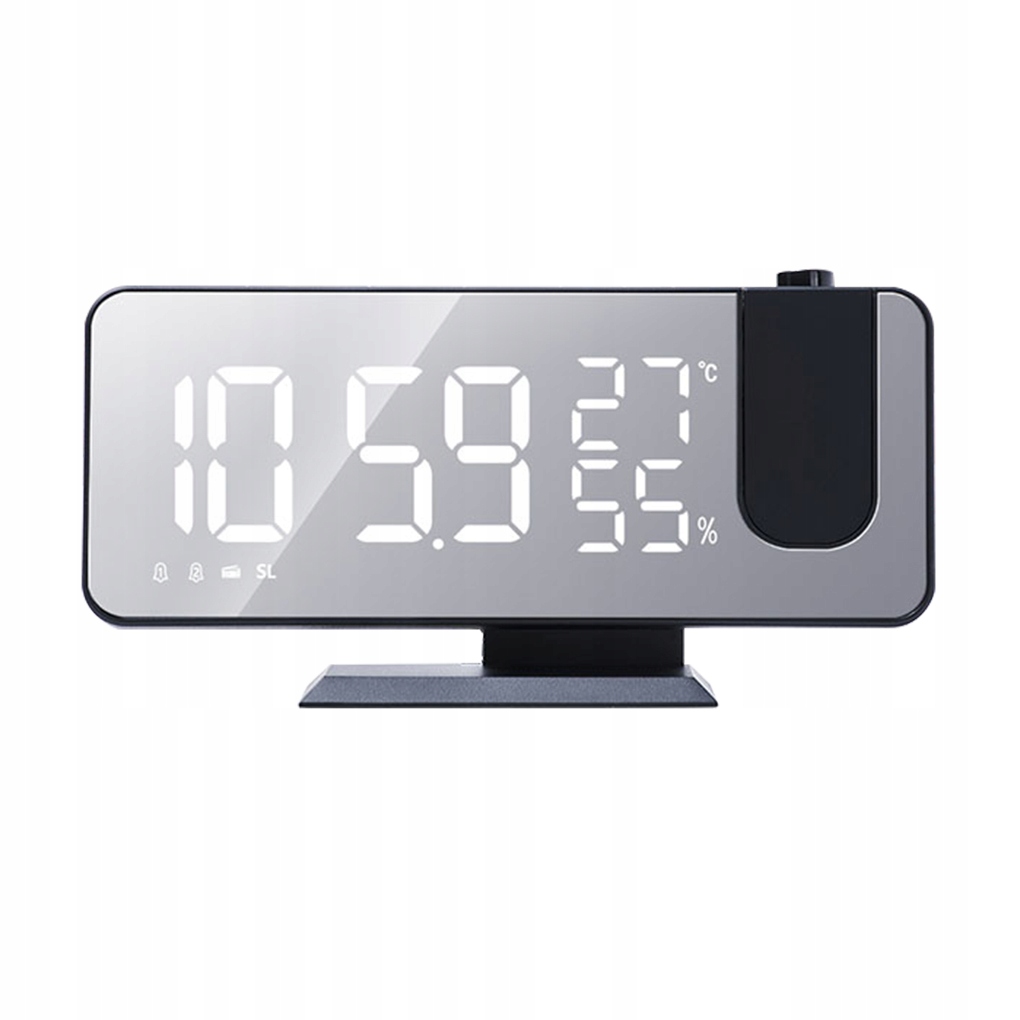 Цифровые часы температуры и влажности имеют две сигналы тревоги, имеют зеркальную поверхность и позволяют устанавливать радио в качестве звука тревоги.