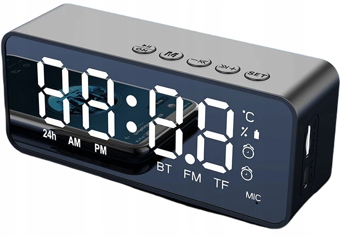 Этот будильник имеет большой зеркальный дисплей, на котором отображаются большие числа, что облегчает проверку времени даже без необходимости достичь очков . Однако это не единственное, что предлагает этот инновационный продукт. Будильник также отображает температуру, уровень батареи и имеет функцию Bluetooth 5.0, поэтому вы можете легко и быстро подключить ее со своим смартфоном и наслаждаться музыкой без кабелей беззаботных.