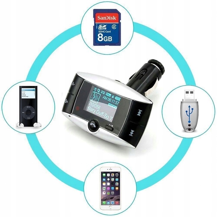 USB Bluetooth FM-передатчик с устройством для чтения SD-карт и USB-разъемом идеально подходит для любого автомобиля.