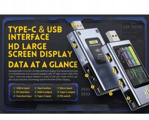 - Измерение размножения: Легкое обнаружение и измерение импульса, что является ключевым фактором в оценке качества питания, которое они думают о высокой надежности и безопасности, это устройство гарантирует тщательное обнаружение напряжения USB и тока.