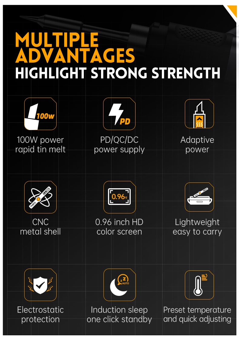Intellent Fnirsi HS-02 -это высокопроизводительный паяльный инструмент, предназначенный для точности и производительности. Оснащенная цифровая система управления температурой, обеспечивает быстрое отопление и стабильное обслуживание температуры, обеспечивая оптимальные условия пайки. Эргономическая конструкция обеспечивает удобный держатель для долгосрочного использования, а легкое тело увеличивает маневренность. Этот универсальный инструмент, оснащенный заменяемыми паяльными пещерными пещертами, идеально подходит как для профессионалов, так и для DIY. зарядка.