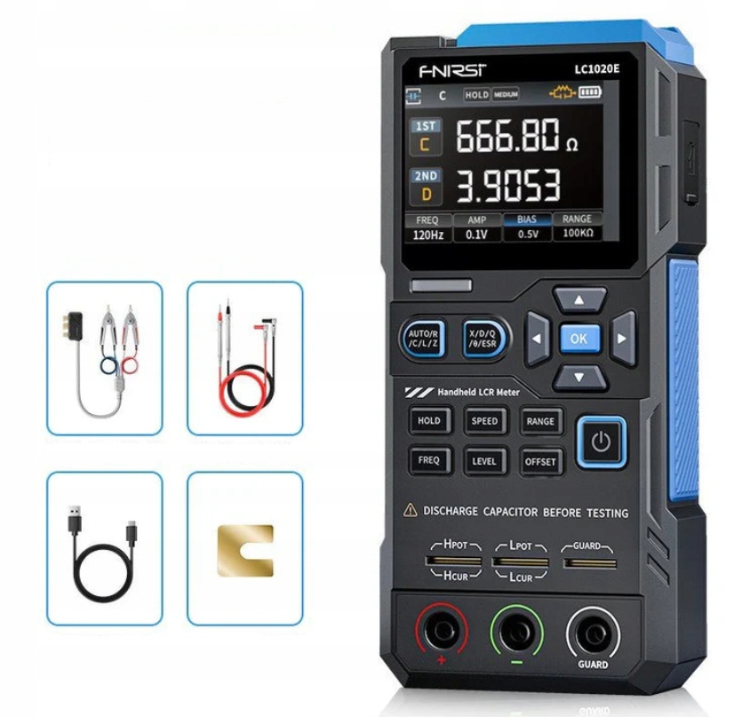 fnirsi lc1020e -это интеллектуальная, ручная мостовая мера, предназначенное для точных измерений l, c, ESR. Поддерживает автоматическое распознавание компонентов, диапазон пяти тестовых частот (до 100 кГц) и три уровня испытательного напряжения (0,1 В / 0,3 В / 0,6 В). Благодаря режимам сортировки и прохождения/прохождения, это идеально подходит для последовательной работы и контроля качества.