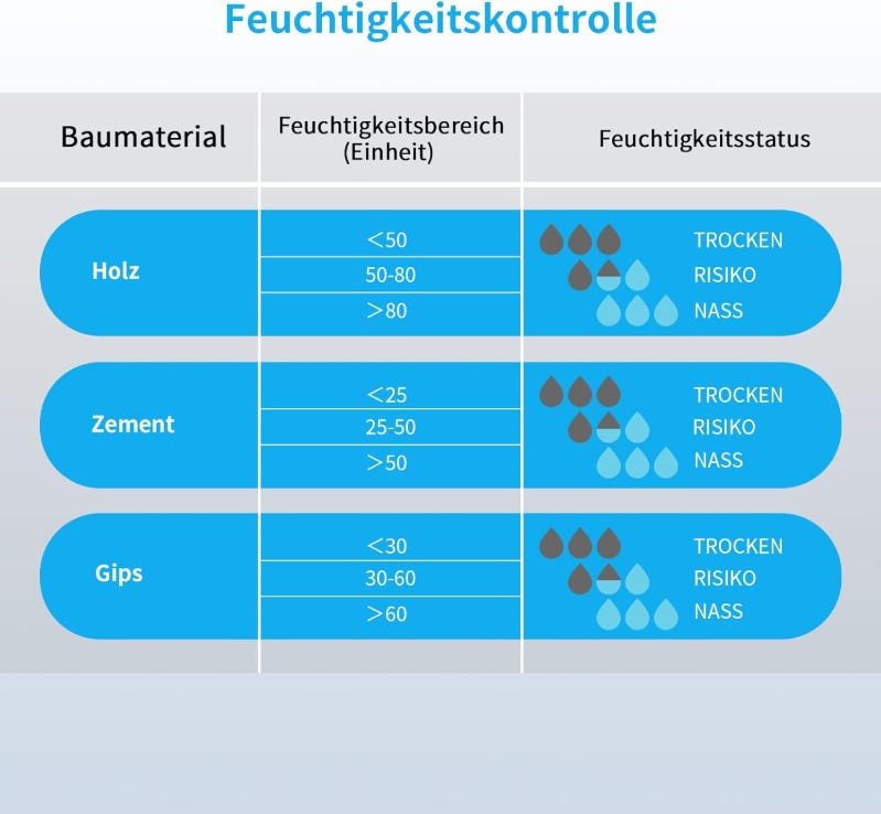 В этом инновационном влагомере используется шариковый датчик на основе высокочастотных волн, который позволяет быстро и неинвазивно измерять содержание влаги в различных материалах. Идеально подходит для углов, плинтусов и труднодоступных мест. Защищает от таких повреждений, как коррозия, плесень, отслаивание краски и других проблем, возникающих из-за избыточной влаги.