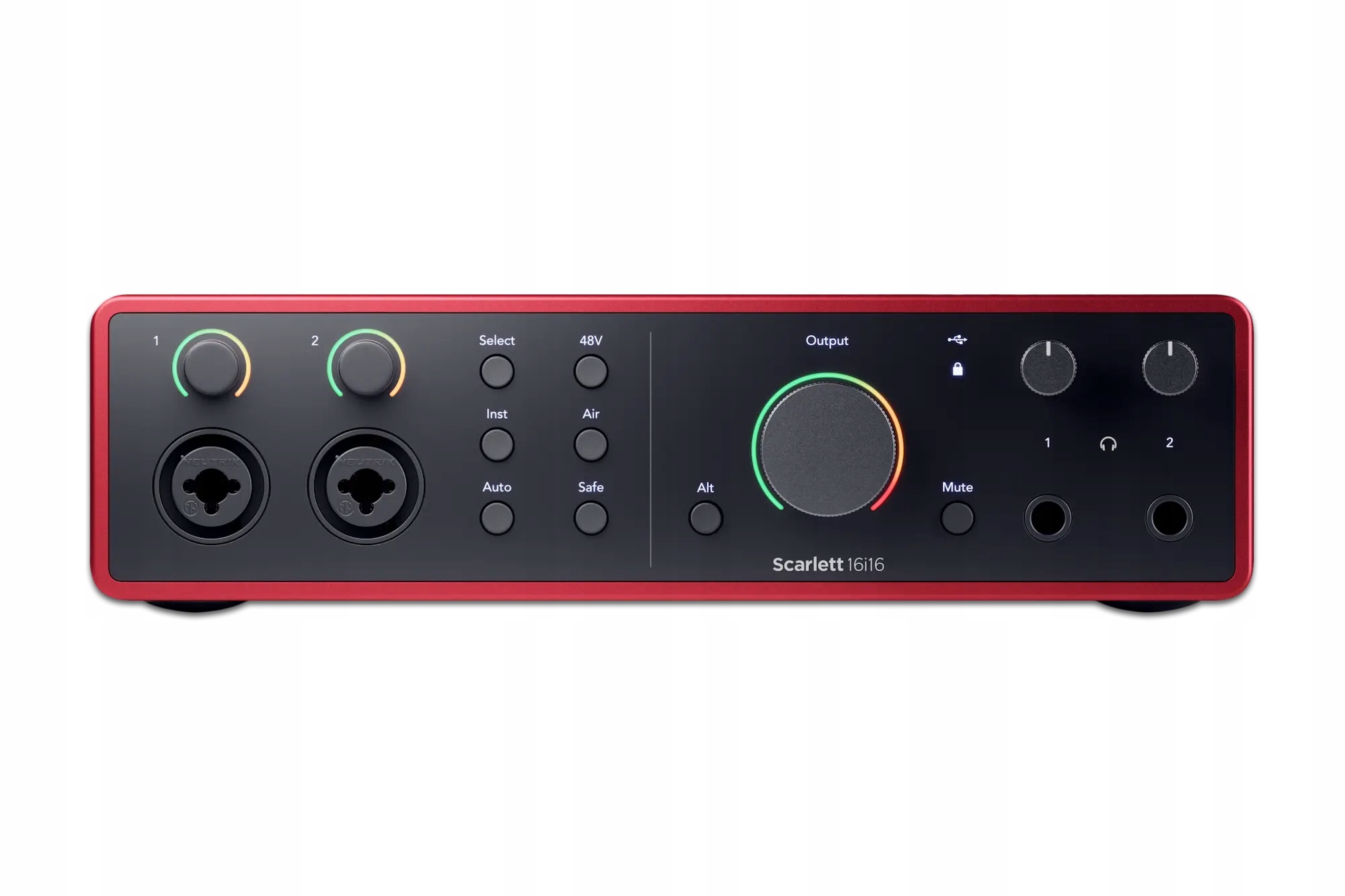 Scarlett 16i16 оснащен преобразователями, взятыми непосредственно из флагманской серии RedNet компании Focusrite. ведущий в отрасли аудиоинтерфейс USB для музыкальных студий. Он имеет 16 входов и 16 выходов, включая два микрофонных предусилителя, инструментальный и линейный входы Hi-Z, ADAT, SPDIF и MIDI.