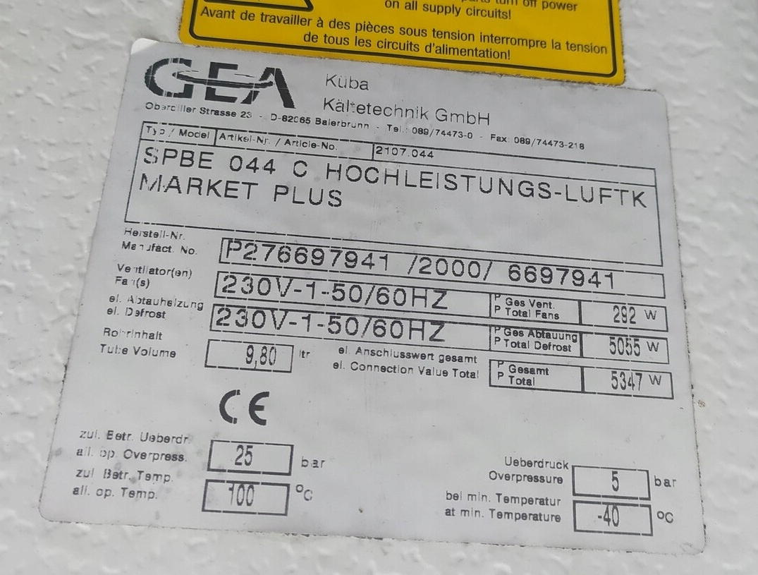 использованный воздушный кулер Gea kuba, испаритель холодильника с емкостью 11,85 кВт при +2*c в камере. H2>