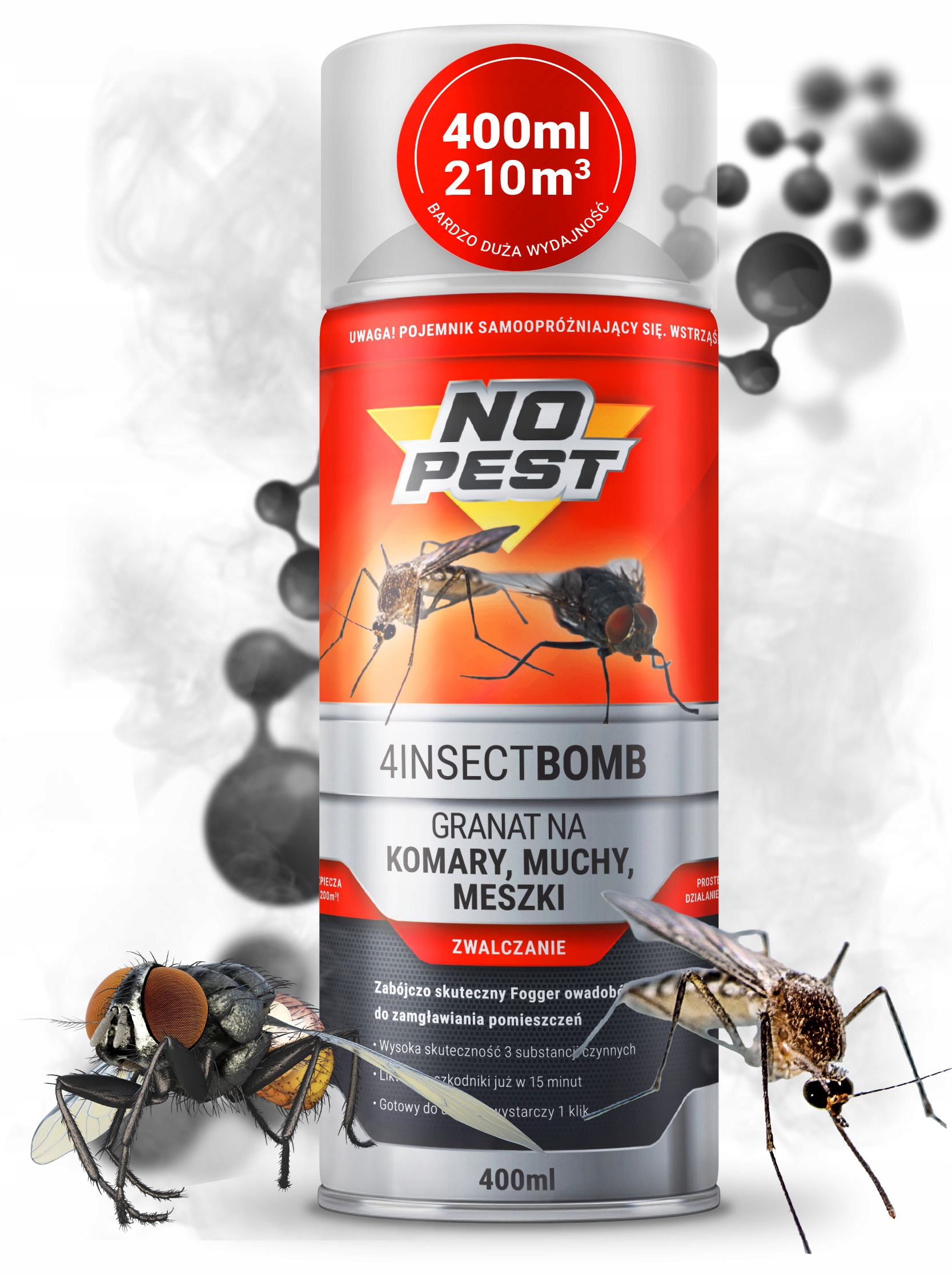 FOGGER BOMBA PREPARAT ŚRODEK NA MUCHY KOMARY MESZKI ĆMY MOLE NO PEST 400ML