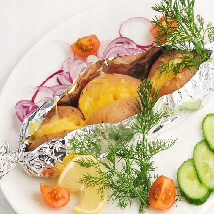 Фольга алюминиевая идеально подходит для упаковки и защиты продуктов питания от высыхания и потери пищевой ценности под воздействием света. Кроме того, она идеальна для запекания, жарки и гриля.