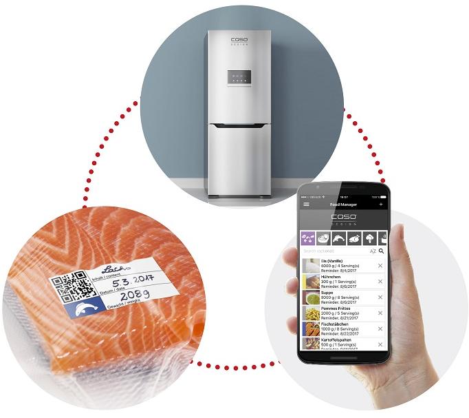 - включает этикетки с QR-кодом (для приложения CASO FOOD MANAGER) для обозначения типа, названия, даты и веса упаковки.