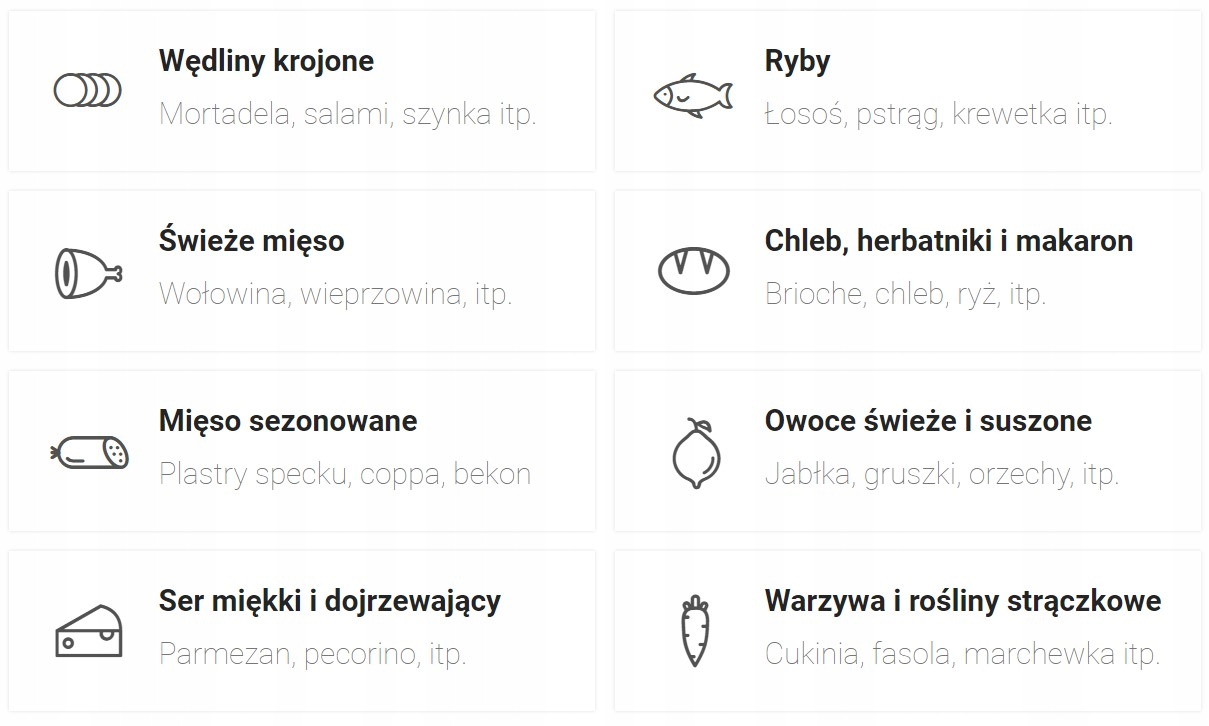 Свежее мясо, мясное ассорти, специи, продукты из птицы, рыба, незрелые сыры, сыпучие продукты, орехи, ювелирные изделия и ценности, пластмасса, металлические элементы, документы. Пакеты имеют накатку с одной стороны. Один слой накатки необходим для правильного и быстрого удаления воздуха. Гладкий слой обеспечивает эстетичную визуализацию упакованного продукта. Односторонние пакеты с накаткой совместимы с большинством современных упаковочных машин, доступных на рынке.