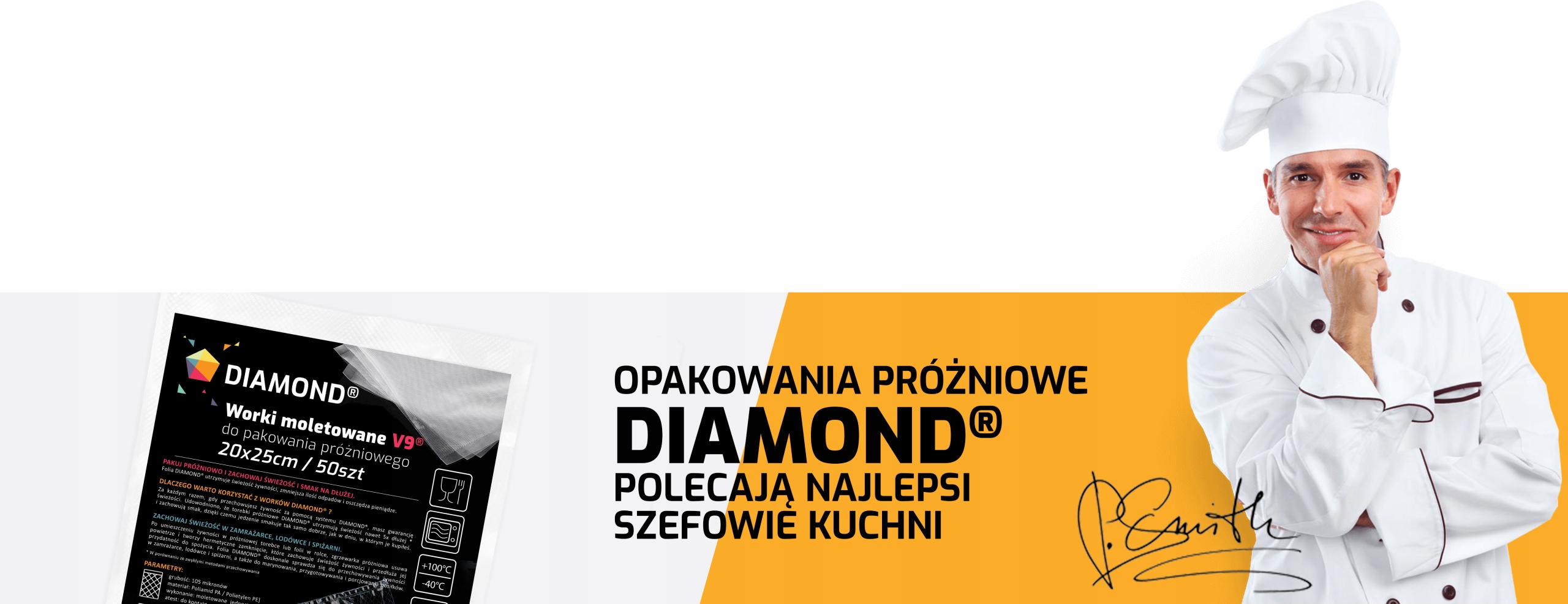 Предложение пакетов DIAMOND и фольги с накаткой включает более 30 стандартных размеров и рисунков упаковки (пакеты из фольги и рукава). Широкий ассортимент вакуумной упаковки позволяет адаптировать ее практически к любому товару и любому вакуумному упаковочному устройству.
