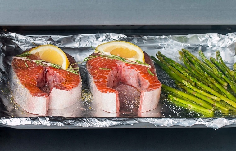 - Если вы хотите, например, запечь в нем мясо, заверните его в алюминиевую фольгу так, чтобы матовая сторона оказалась сверху, благодаря благодаря чему процесс запекания точно будет короче и блюдо будет сочнее.