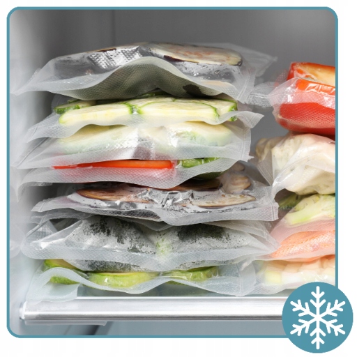 За счет устранения воздуха наши пленки позволяют продлить свежесть продуктов до 5 раз, а это значит, что меньше продуктов выбрасывается в мусор и больше экономия.
