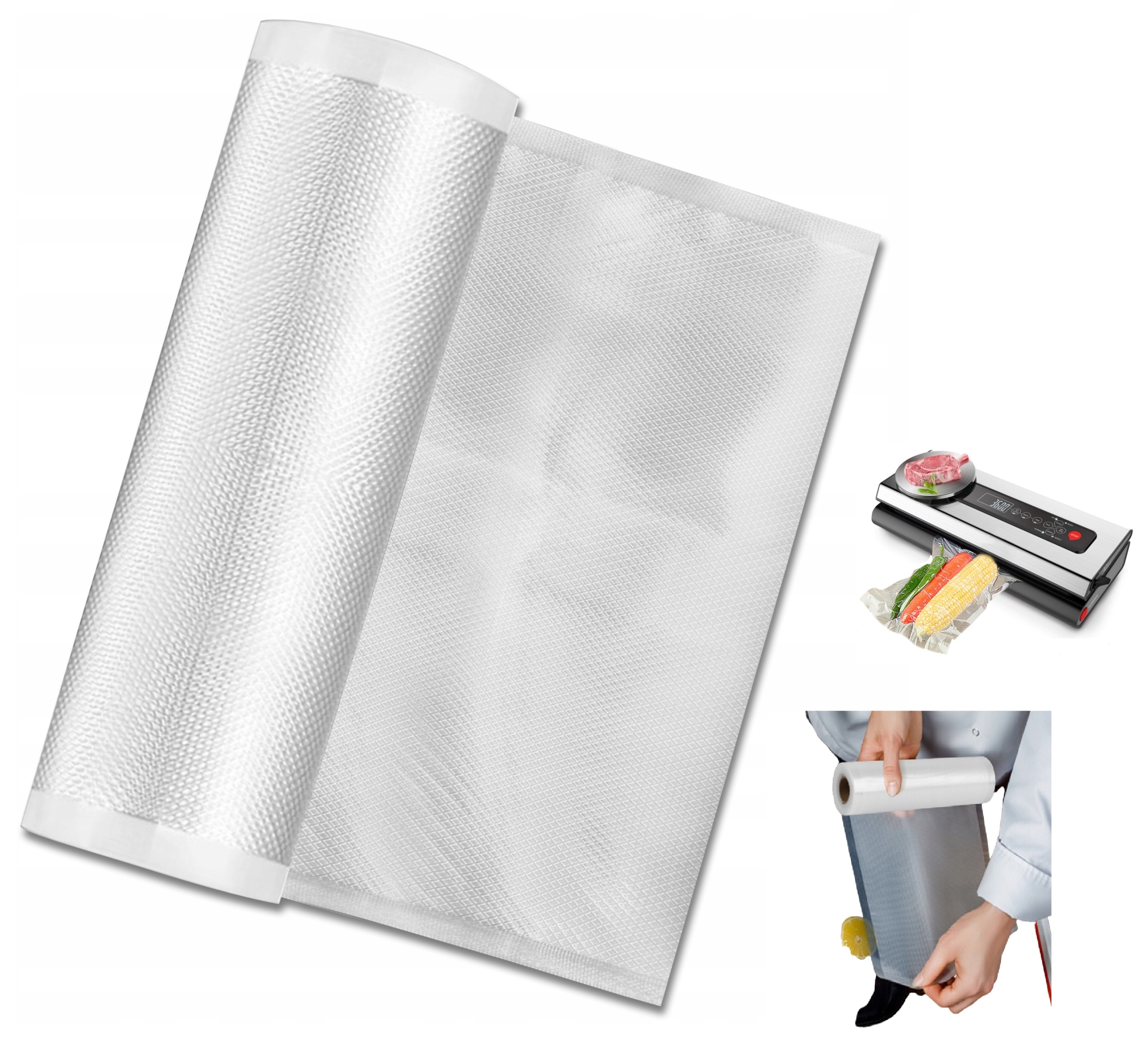 Фольга с накаткой и рифлением для вакуумного упаковщика, рулонный рукав, 15 см х 6 м