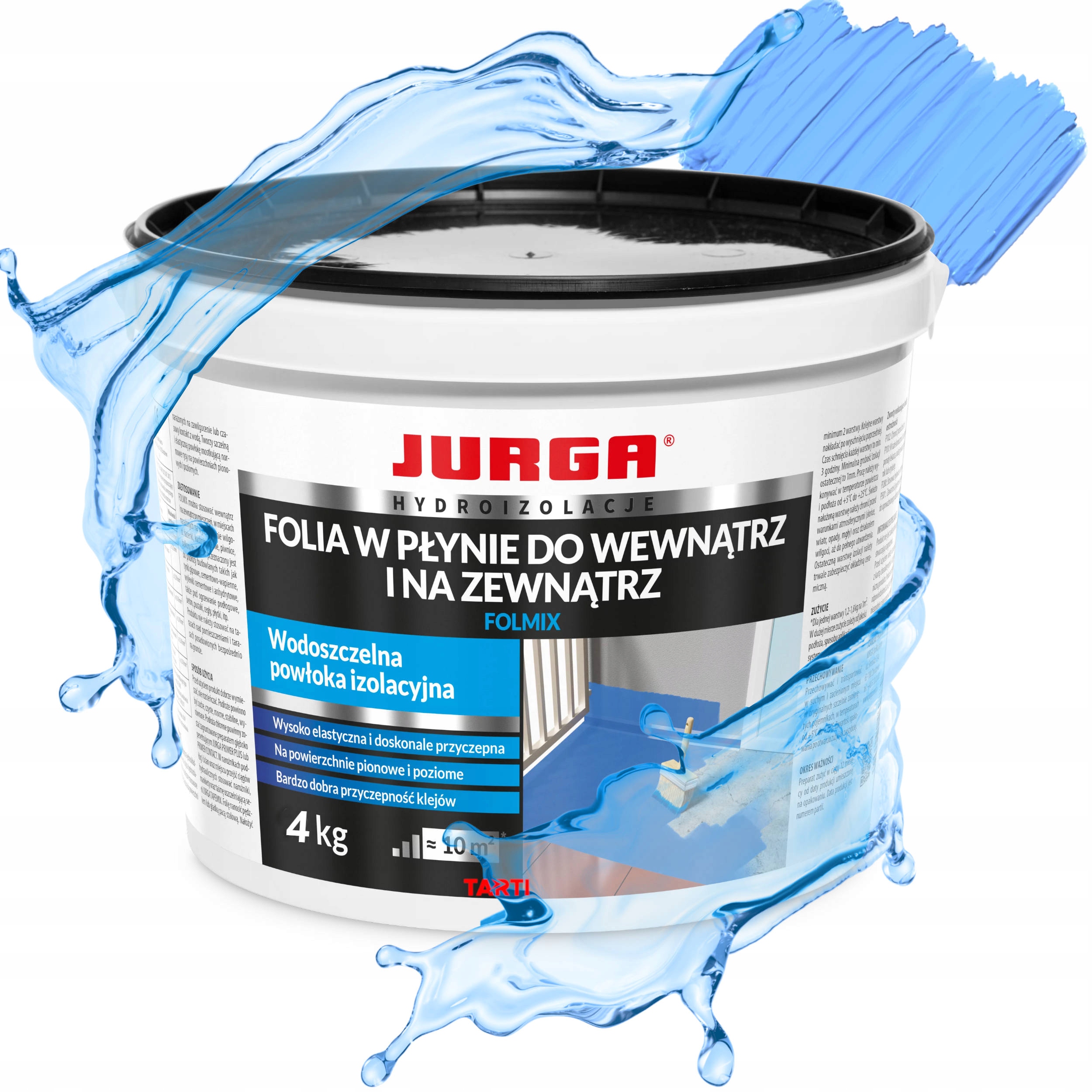 Перед использованием хорошо перемешайте продукт, не разбавляйте. Основание должно быть сухим, чистым, прочным, устойчивым и ровным. Впитывающие основания следует загрунтовать глубокопроникающей грунтовкой JURGA PRIMER PLUS или PRIMER SILICATE. Используйте уголки, втулки и уплотнительную ленту серии JURGA TAPEMIX в углах полов и стен, а также в местах прохождения гидравлических проходов. Нанесите фольгу кистью или гладким стальным шпателем. Нанесите минимум 2 слоя. Последующие слои наносите после высыхания предыдущего. Время высыхания каждого слоя мин. 3 часа. Минимальная толщина итоговой изоляции – 1 мм. Работы следует проводить при температуре воздуха и основания от +5°С до +25°С. Свеженанесенный слой следует защищать от погодных условий (солнце, ветер, осадки, туман) и влаги до полного затвердевания. Последний слой изоляции должен быть постоянно защищен керамической облицовкой.