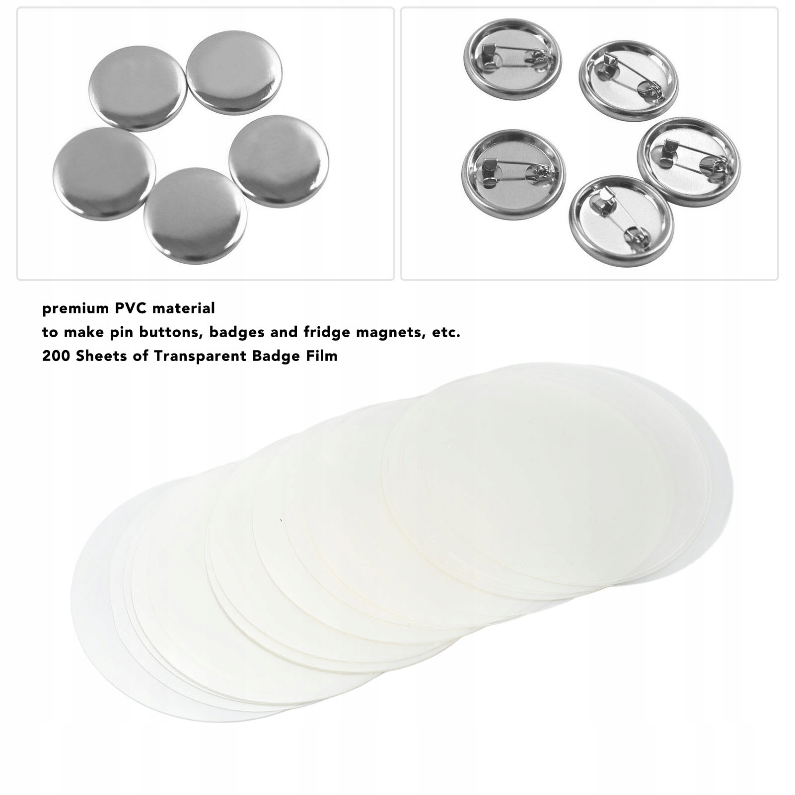 2 、 Прозрачная конструкция: эти защитные пленки для бляшек имеют прозрачную конструкцию, предлагая большее удобство создания значков. Кнопки бляшек применяются к кнопкам с булавками, бляшками, магнитами холодильника и другими проектами поделок.