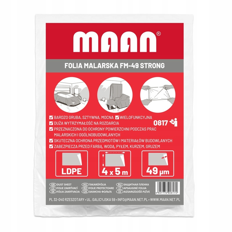 ФОЛЬГА ЗАХИСНА МАЛЮВНА ТОВЩИНА 49 МІКРОНІВ МІЦНА 4 х 5 м КОНСТРУКЦІЙНИЙ РЕМОНТ