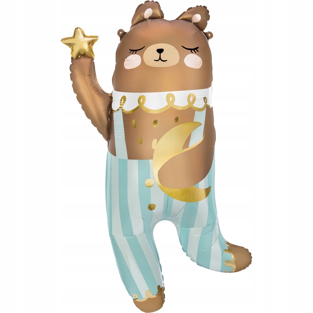 - Фольгированный шар в виде спящего мишки Тедди с золотой звездочкой — очаровательное и эффектное украшение, которое непременно украсит любой детский праздник. Шар изготовлен из матовой цветной фольги, что позволяет сочетать его с множеством различных тематических украшений. До надувания размеры воздушного шара составляют примерно 72 х 104 см (28,5 х 41"), а после надувания уменьшаются примерно до 55 х 90 см (21,5 х 35,5").