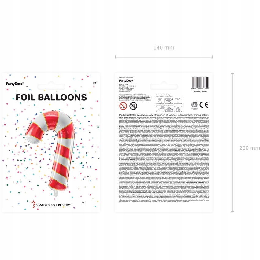 ✔️ Фольгированный шар "Сахарный тростник", красный белый, PartyDeco, 82 см 32"