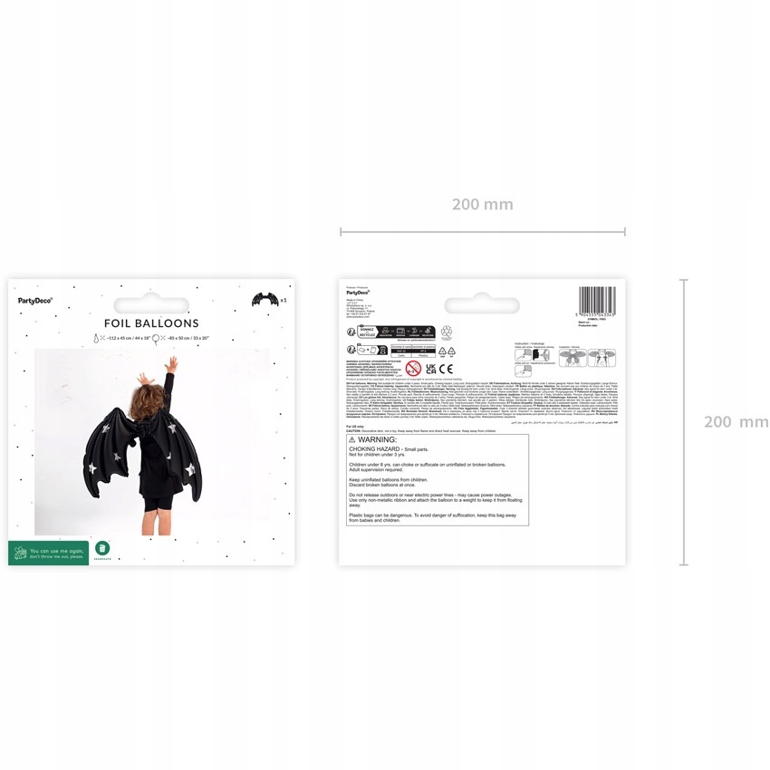 - В надутом состоянии воздушный шар имеет размеры примерно 85 х 50 см, что делает его прекрасным декоративным элементом или практичным дополнением костюма. - Благодаря завязкам воздушный шар можно завязать за спину, имитируя крылья летучей мыши.