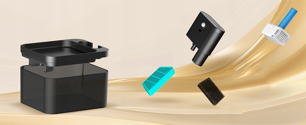 Фонтан изготовлен из безопасного материала ABS, который соответствует стандартам материалов, предназначенных для контакта с пищевыми продуктами. Конструкция устройства позволяет легко разбирать и очищать все элементы, что гарантирует гигиенические условия использования и длительный срок службы изделия.