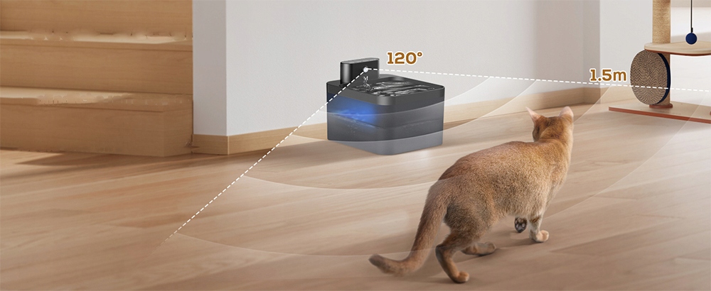 Фонтан предлагает три практичных режима работы, адаптированных к различным потребностям. Сенсорный режим автоматически активирует устройство, когда ваша кошка подходит на расстояние менее 1,5 метров. Таймерный режим включает фонтанчик на 20 секунд каждые 15 минут, а непрерывный режим, работающий после подключения к электросети, обеспечивает бесперебойный доступ к пресной воде.