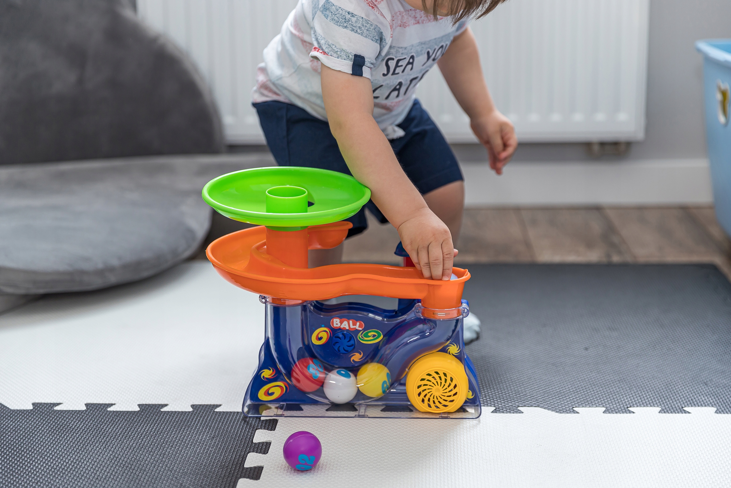 Фонтан, который бросает разноцветные шарики с головокружительной скоростью. Внутри 5 разноцветных шариков. При нажатии на гриб включится механизм, приводящий шарики в движение и вы услышите красивую мелодию для детей. Выброшенные шары возвращаются обратно в центр через специальную горку.
