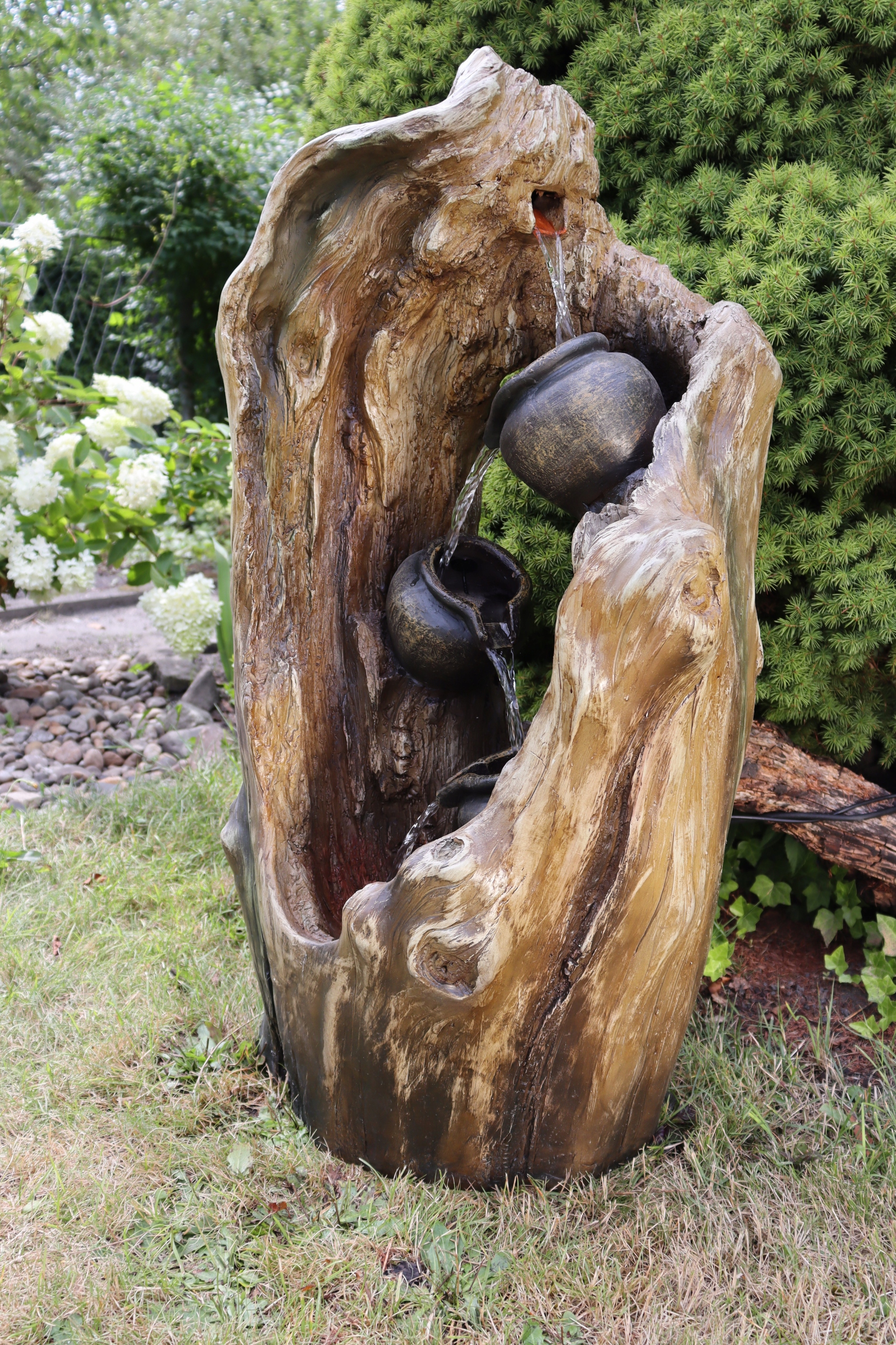 , изготовленный из постоянной полиэфирной смолы, фонтан "Nanka" устойчив к погодным крышкам. Несмотря на свою прочную конструкцию, он поддерживает легкость натурального дерева. Фонтан "Нанка" - это больше, чем просто объект. Это приглашение к миру расслабления и мира, где каждый звук текущей воды напоминает о простых удовольствиях жизни. Это элемент, который даст вашему саду уникальный характер, что делает каждый момент, проведенный на открытом воздухе, чтобы стать незабываемым.