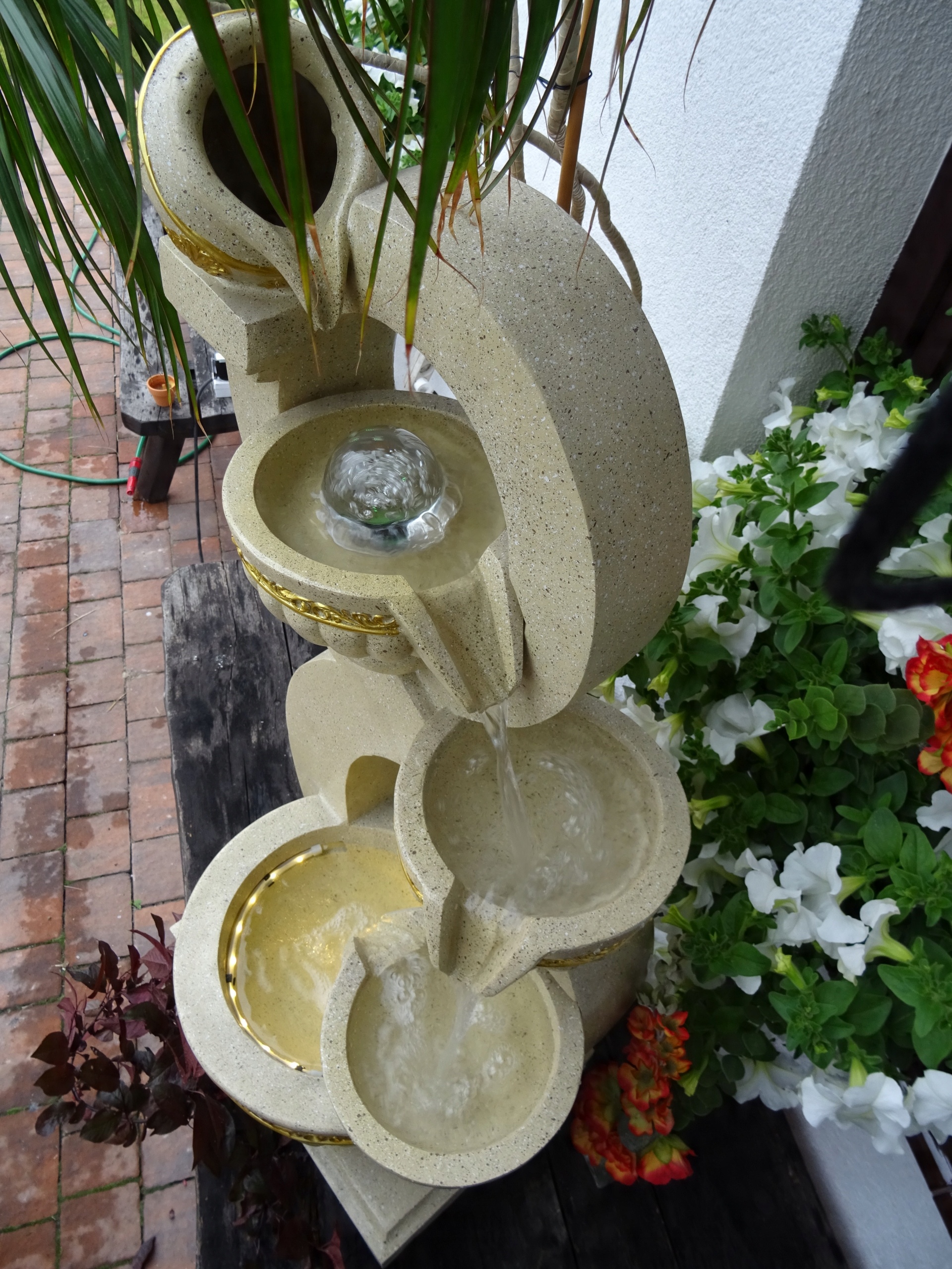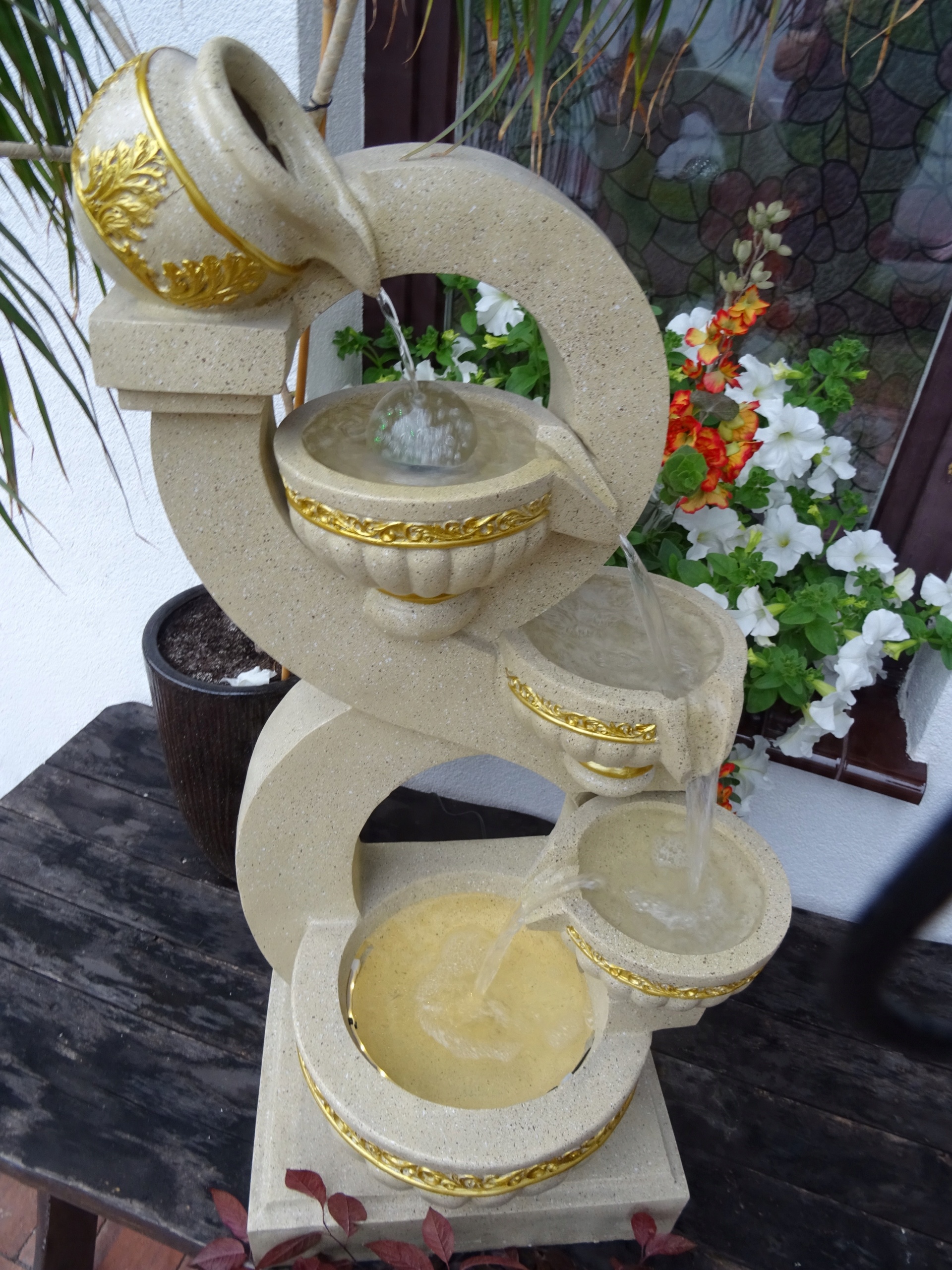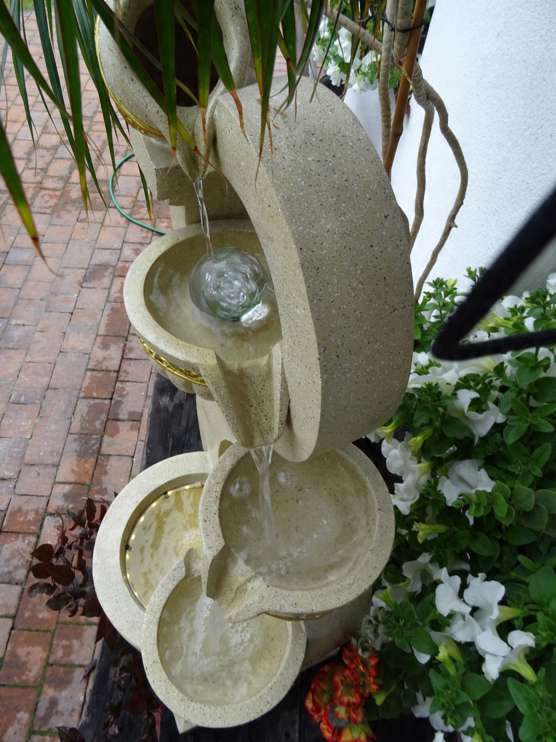 <ул>Фонтан закрытого типа, вода из нижнего резервуара перекачивается в верхний резервуар, откуда каскадом стекает вниз - под действием силы тяжести...... здесь этого не слышно , но это приятный и приятный опыт, который закрывает глаза - вы можете почувствовать ощущение присутствия рядом с естественным потоком