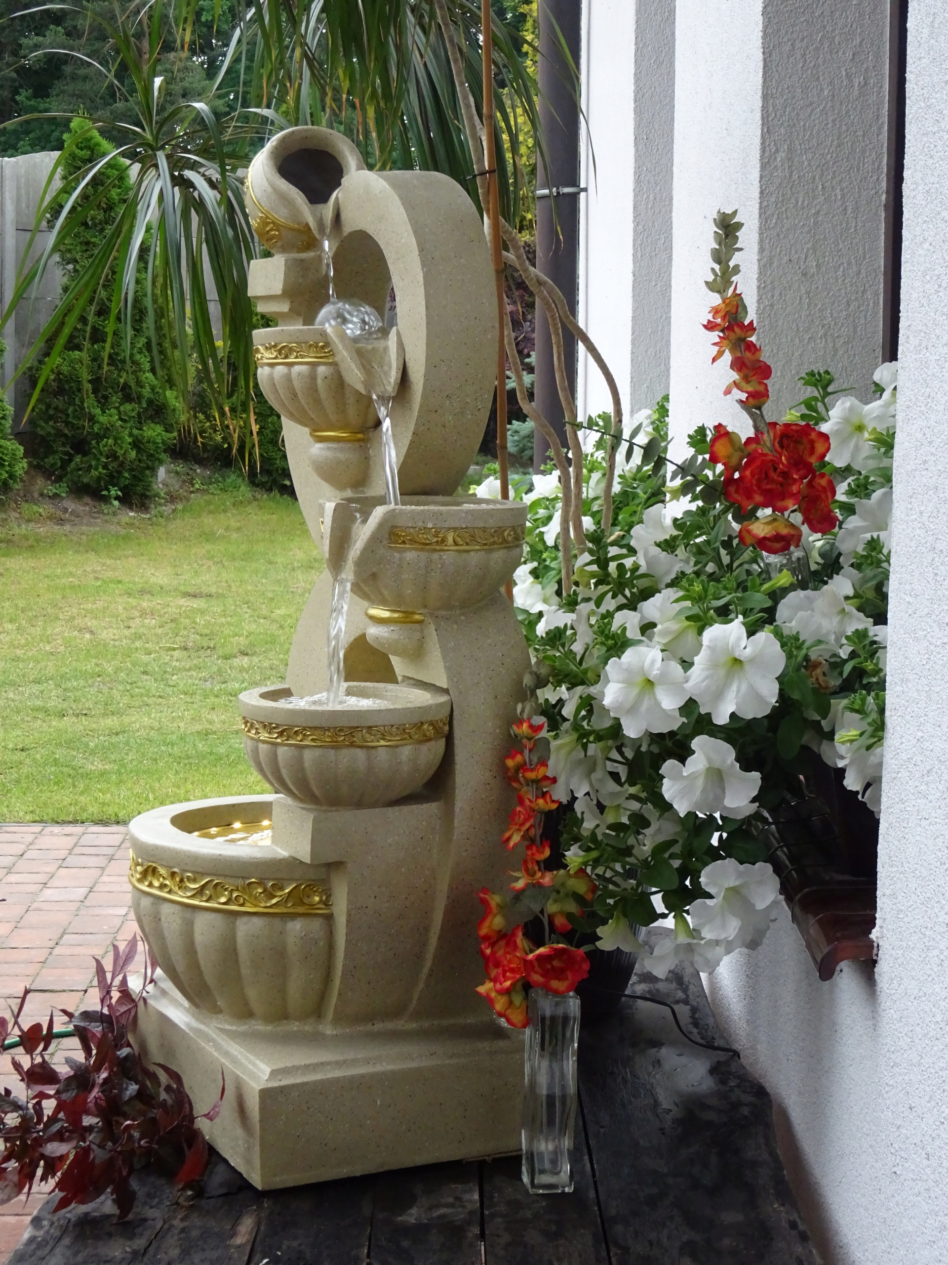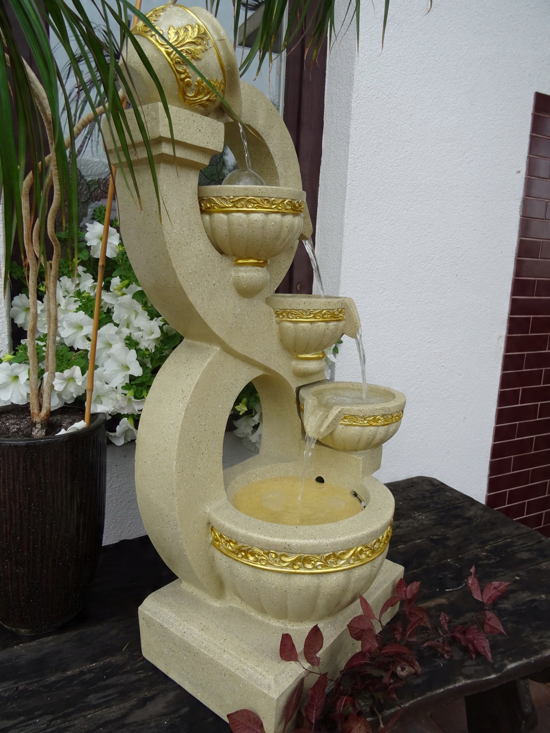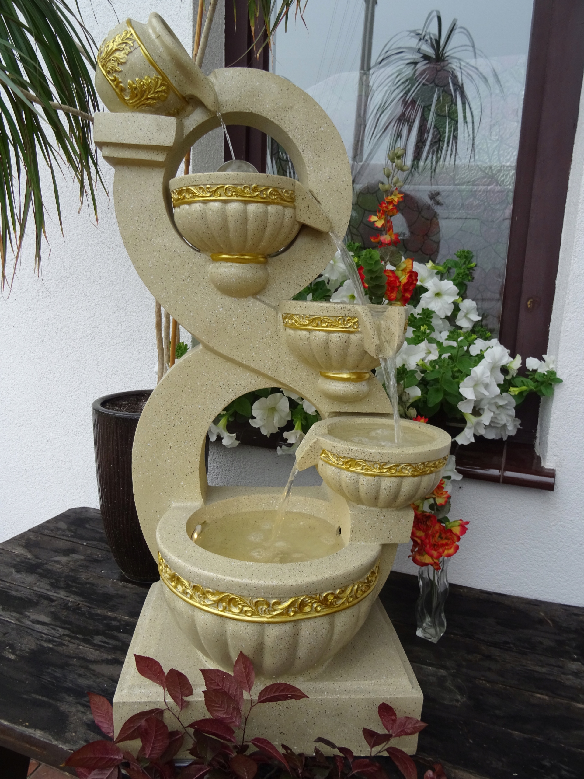 <ул>Фонтан закрытого типа, вода из нижнего резервуара перекачивается в верхний резервуар, откуда каскадом стекает вниз - под действием силы тяжести...... здесь этого не слышно , но это приятный и приятный опыт, который закрывает глаза - вы можете почувствовать ощущение присутствия рядом с естественным потоком