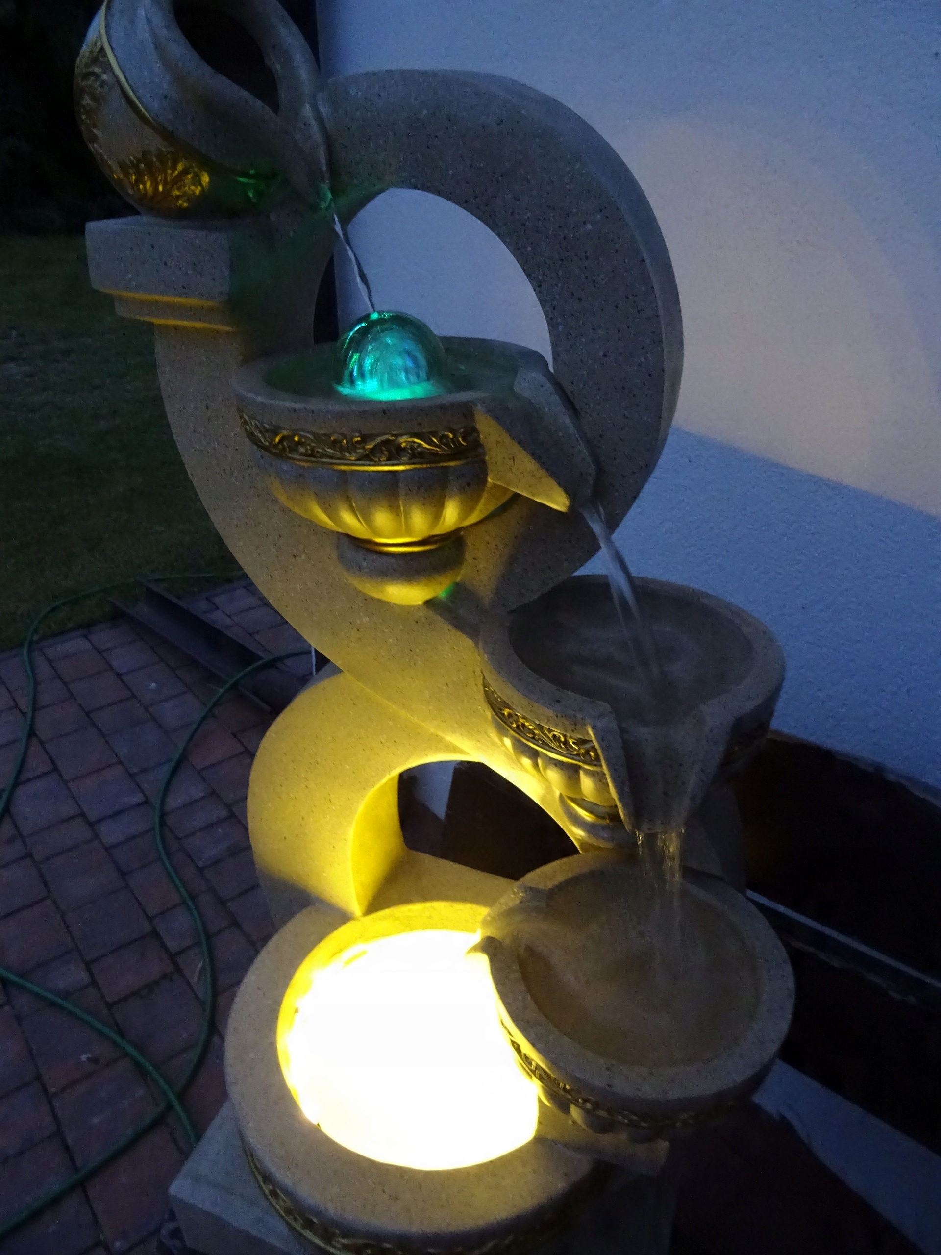 САДОВЫЙ ФОНТАН «8» высота 108 см - Светодиодное освещение - установлено. ЦВЕТ БЕЖЕВЫЙ-ПЕСЧАНИК-ЗОЛОТО.