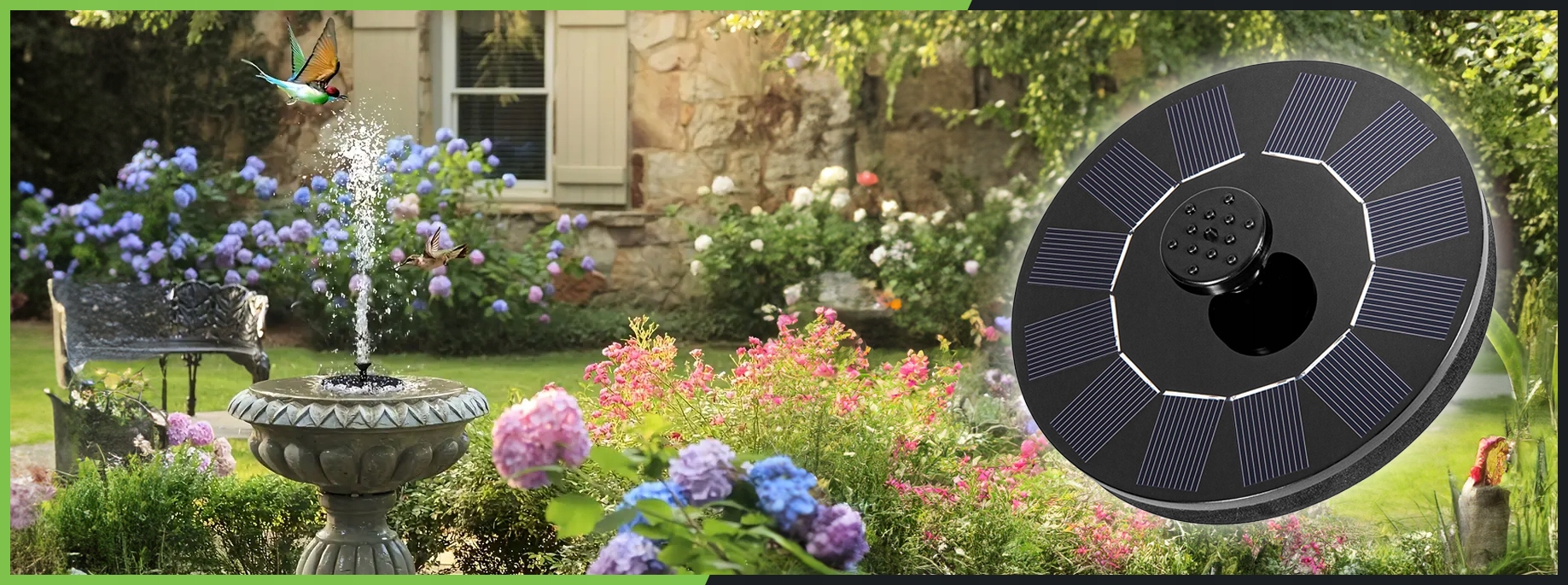Наш фонтан - элегантное украшение для воды и прудов. Благодаря солнечному свету он работает без кабелей и дополнительных затрат на энергию.