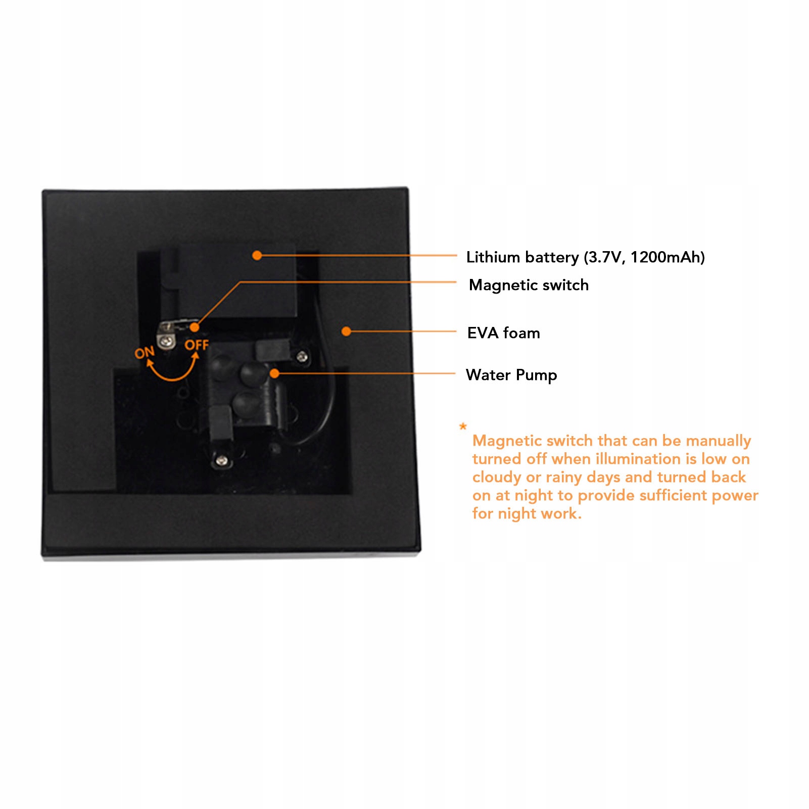 4. Батарея с большой емкостью: просто в мире Sone, когда фонтан Sone получит звуковой мир, он будет работать автоматически через несколько секунд. Благодаря батареям большой емкости он может осветить мир и фонтан ночью.