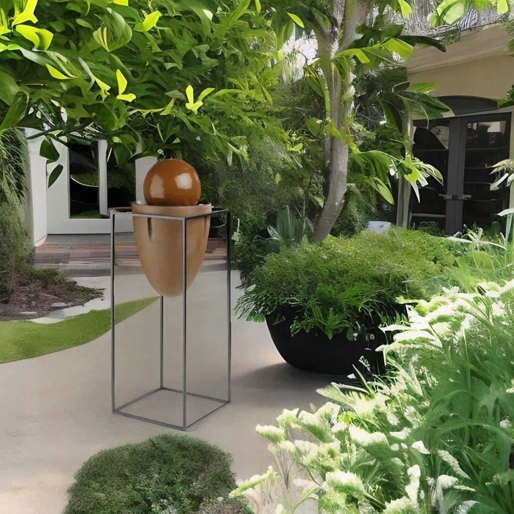 Циркуляция воды закрыта, фонтан полностью самодостаточен, вам не нужен дополнительный бак (однако следует помнить, что с каждым фонтаном такой фонтан следует систематически пополнять, поскольку вода испаряется, а его низкий уровень может повредить насосу слишком низко).