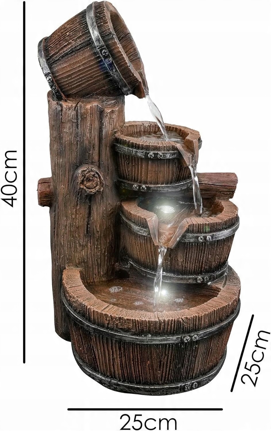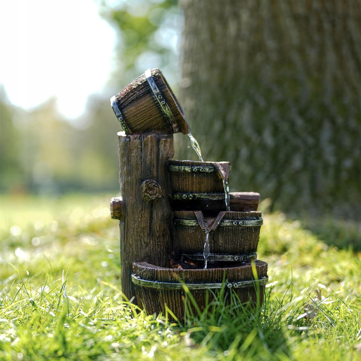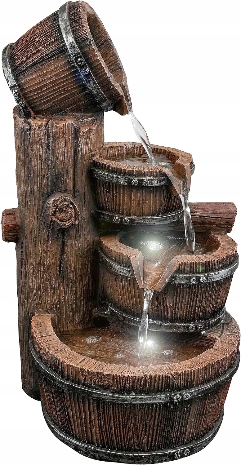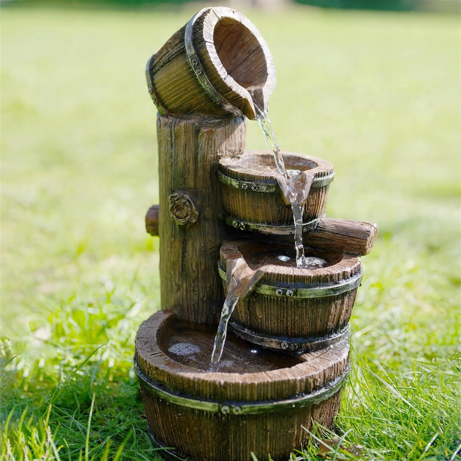 GEEZY Garden Water Feature Светодиодный фонтан для внутреннего и наружного применения Каскадные отдельно стоящие садовые статуи из полирезины Светильники и водные украшения (фонтан-бочка)
