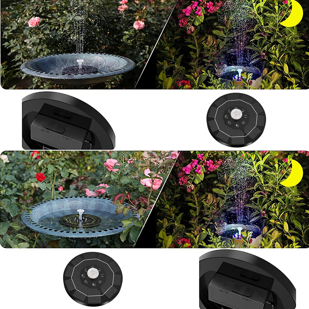 - Ночной режим: Фонтан не работает днем и светодиод не загорается, днем он накапливает больше энергии, а ночью работает и загорается вверх. Вы можете выбирать разные режимы в соответствии с вашими предпочтениями.