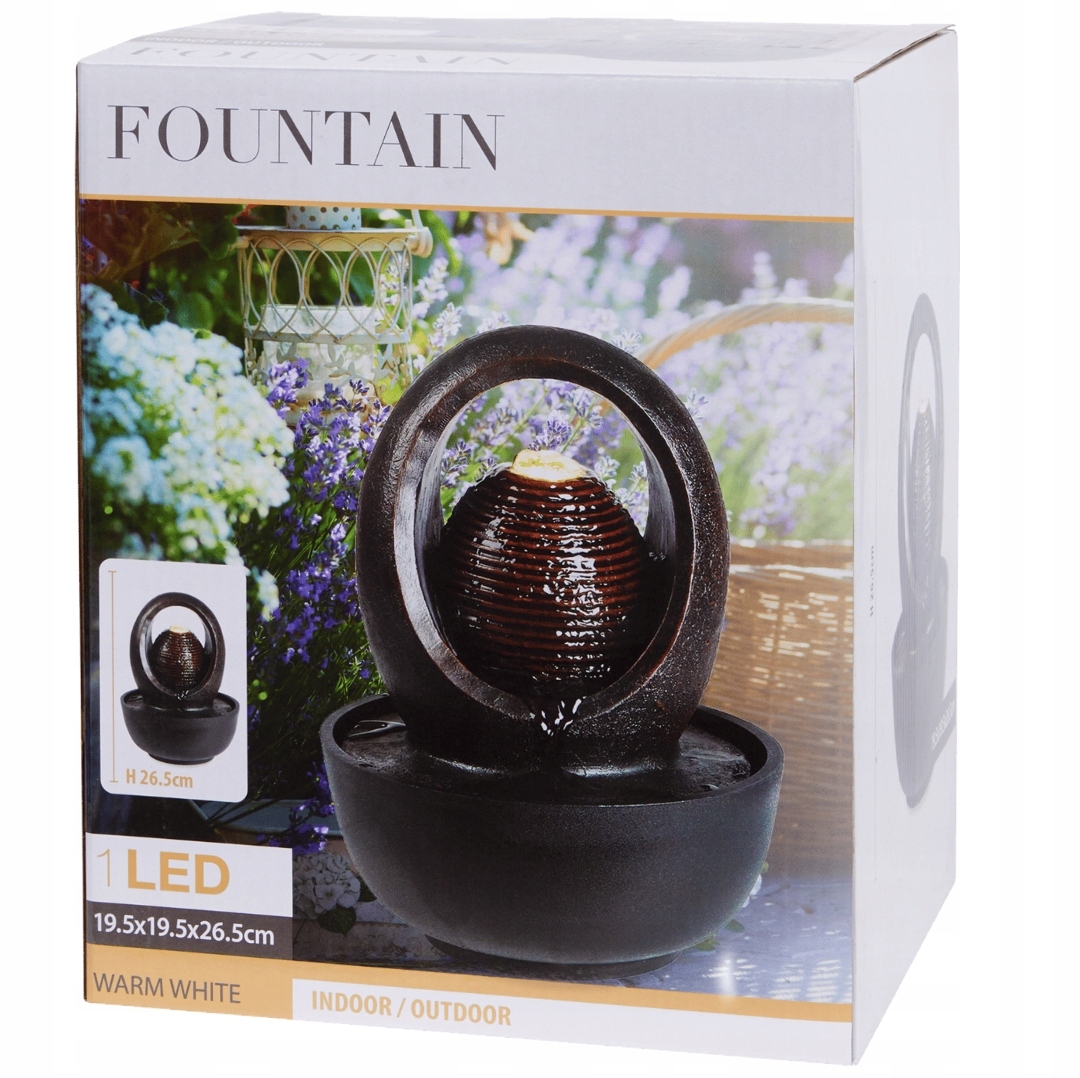 Фонтан со светодиодной подсветкой — отличный выбор для создания спокойной атмосферы в вашем жилом пространстве. Фонтан изготовлен из полиэфирной смолы. Каскадный поток воды подсвечивается светодиодами, что дает потрясающий визуальный эффект, особенно в ночное время. Струи воды и успокаивающий звук создают расслабляющую и медитативную атмосферу. Входящий в комплект высококачественный насос обеспечивает безопасную и надежную работу. Этот фонтан с закрытой струей воды можно разместить в любом месте вашего дома или на террасе.