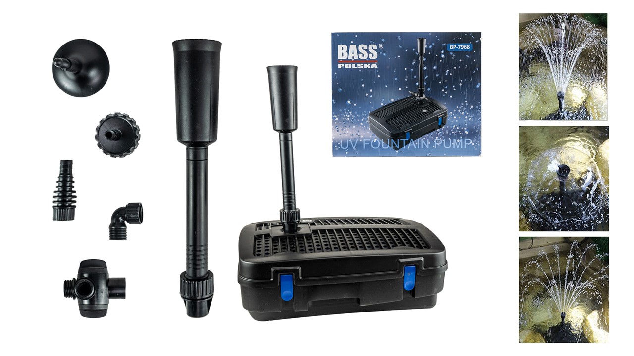 Насос для пруда с УФ-лампой уничтожает бактерии и паразиты, опасные для выращиваемых рыб и растений, с помощью ультрафиолетовых лучей.