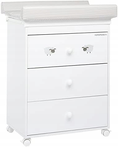 Ванна Pekos от Foppapedretti трансформируется в удобный комод. Он оснащен съемной ванной, складным верхом с мягкой системой безопасности и мягким пеленальным ковриком.
