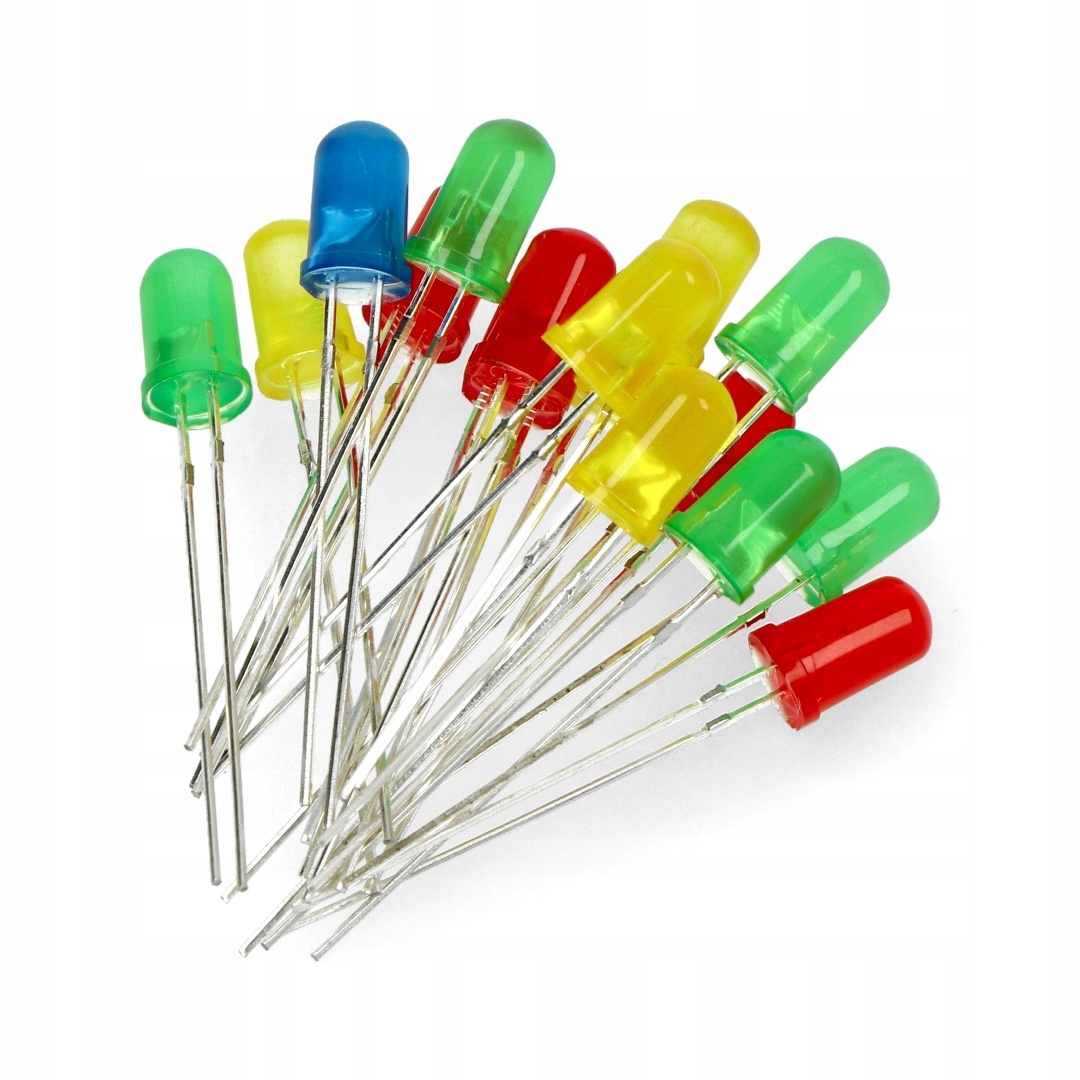 - 15 Светодиодный диод 5 мм - 16 шт (5 зеленых , 5 красных шт, 5 желтых шт и 1 синий шт).