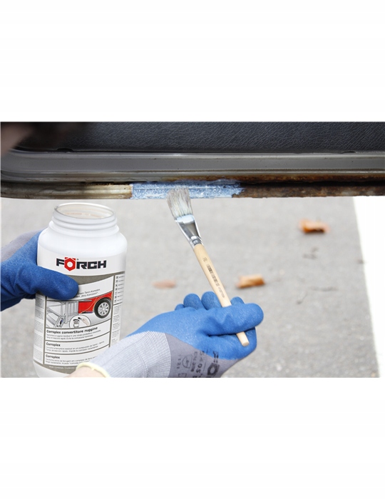 Преобразует остатки ржавчины в нерастворимый комплекс железа с дешевым железом, стабильное, нерастворимое, сине-черное металлоорганическое соединение.