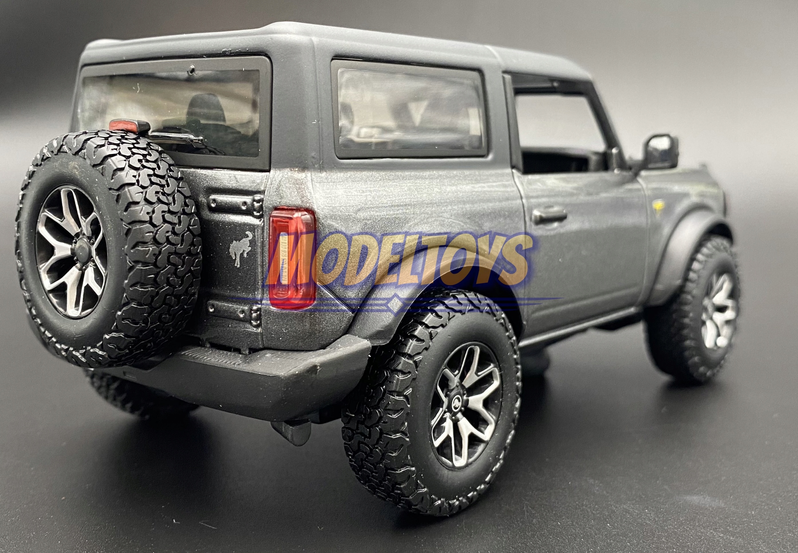 Модель автомобиля Ford Bronco отличается вниманием к деталям. Имеет подвижные элементы – дверцы, колеса. Точно воспроизведены детали.