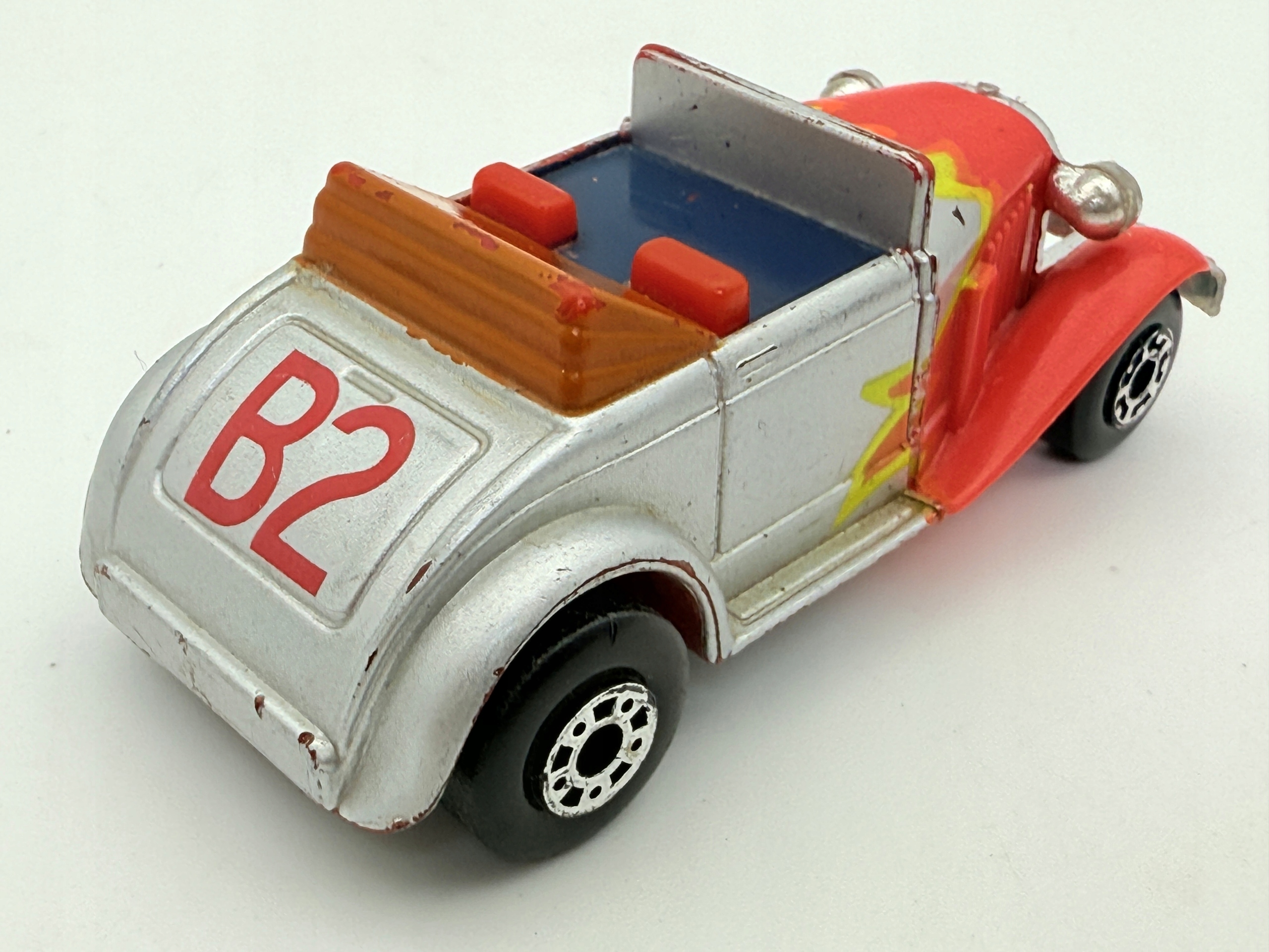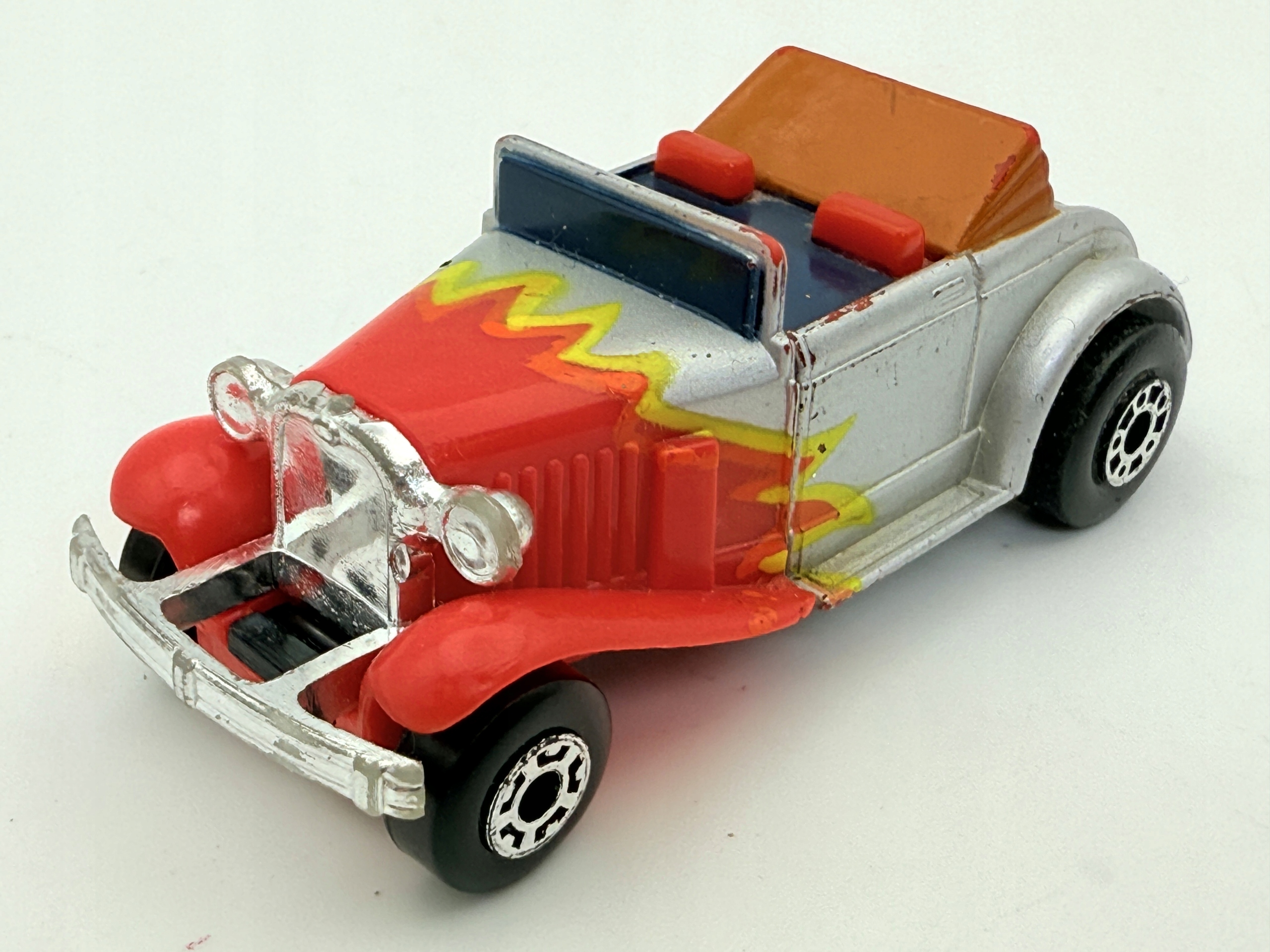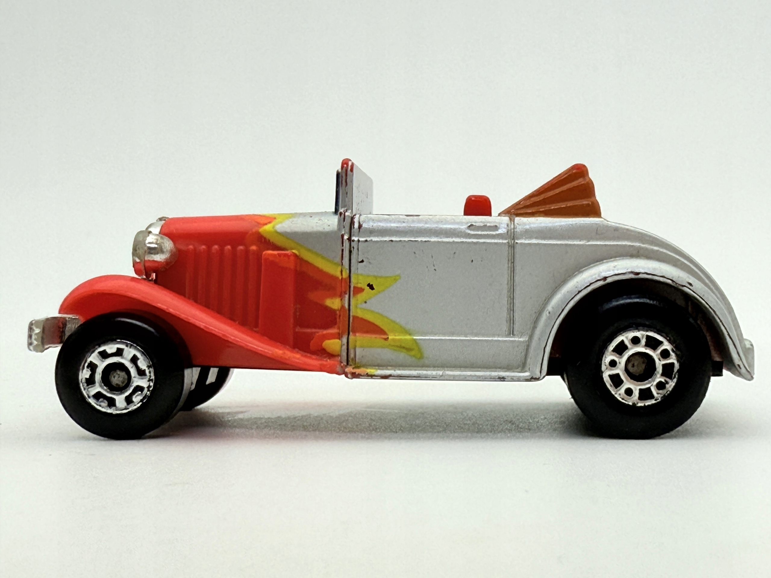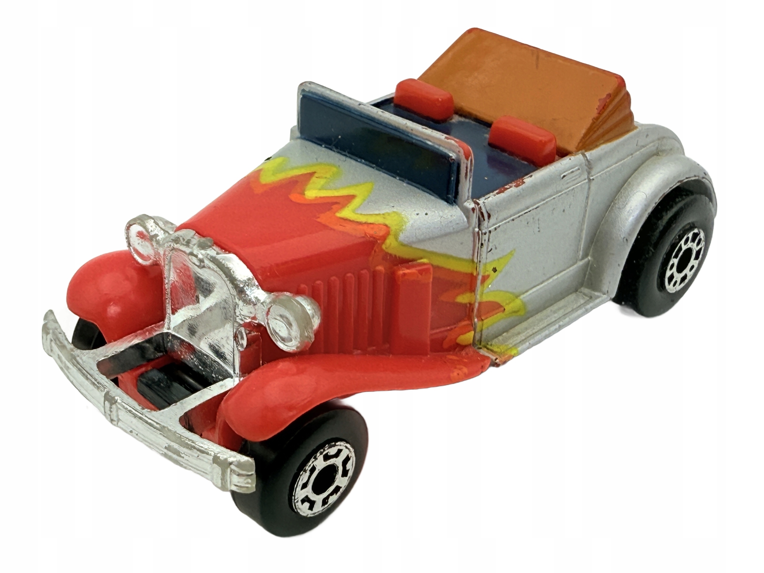 Этот Resorak Matchbox - это классический кабриолет, который привлекает внимание своими уникальными цветами и деталями. Изготовленная из металла и пластика, модель характеризуется красным кузовом с желтыми узорами, что дает ему динамику и характер. Раскрывающаяся крыша и подробные отпечатки делают его привлекательной копией для коллекционеров. Хотя у модели есть некоторые признаки использования, она все еще выглядит хорошо и является ценным дополнением к любой коллекции. Эта весна идеально подходит для любителей классических автомобилей и коллекционеров, ищущих уникальные модели.