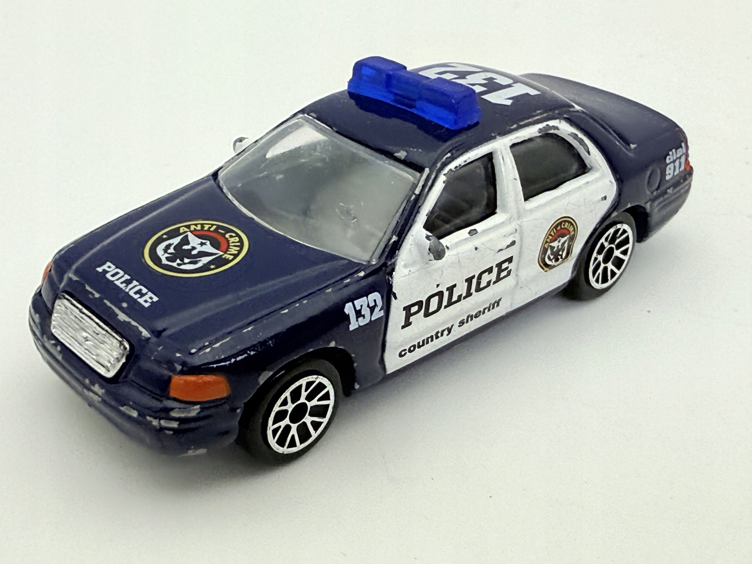 Resorak представляет Ford Crown Victoria — популярную модель, используемую полицейскими службами. Модель изготовлена из металла и пластика, что делает ее прочной. Темно-синий цвет с белыми элементами и синий петух на крыше добавляют аутентичности. Полицейские принты, такие как цифры и логотипы, подчеркивают его характер. Несмотря на видимые следы использования, рессорная подвеска по-прежнему выглядит хорошо и может стать привлекательным пополнением коллекции любителей служебного транспорта.