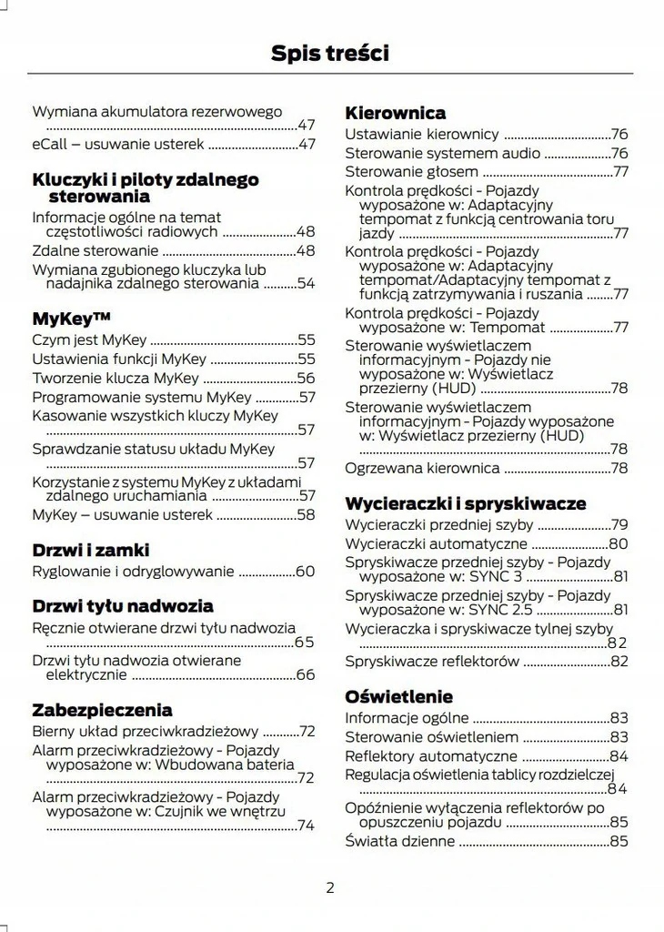 Руководство для владельца Ford содержит все версии оборудования и полезную информацию о том, как эффективно и безопасно использовать автомобиль, например: - указатели поворота, контрольные лампы открытия и закрытия - освещение и обзорность, сиденья, отсеки для хранения вещей, отопление, вентиляция, кондиционирование воздуха. - советы по вождению, эксплуатации, обслуживанию автомобиля - уровни жидкостей, проверка и доливка, аварийные операции, замена колес, предохранителей, замена лампочек - технические данные... и многое другое, дающее путешественникам ощущение безопасности и комфорта. Польское законодательство обязывает продавца приложить к автомобилю руководство по эксплуатации на польском языке. Руководство пользователя автомобиля новое, на польском языке.