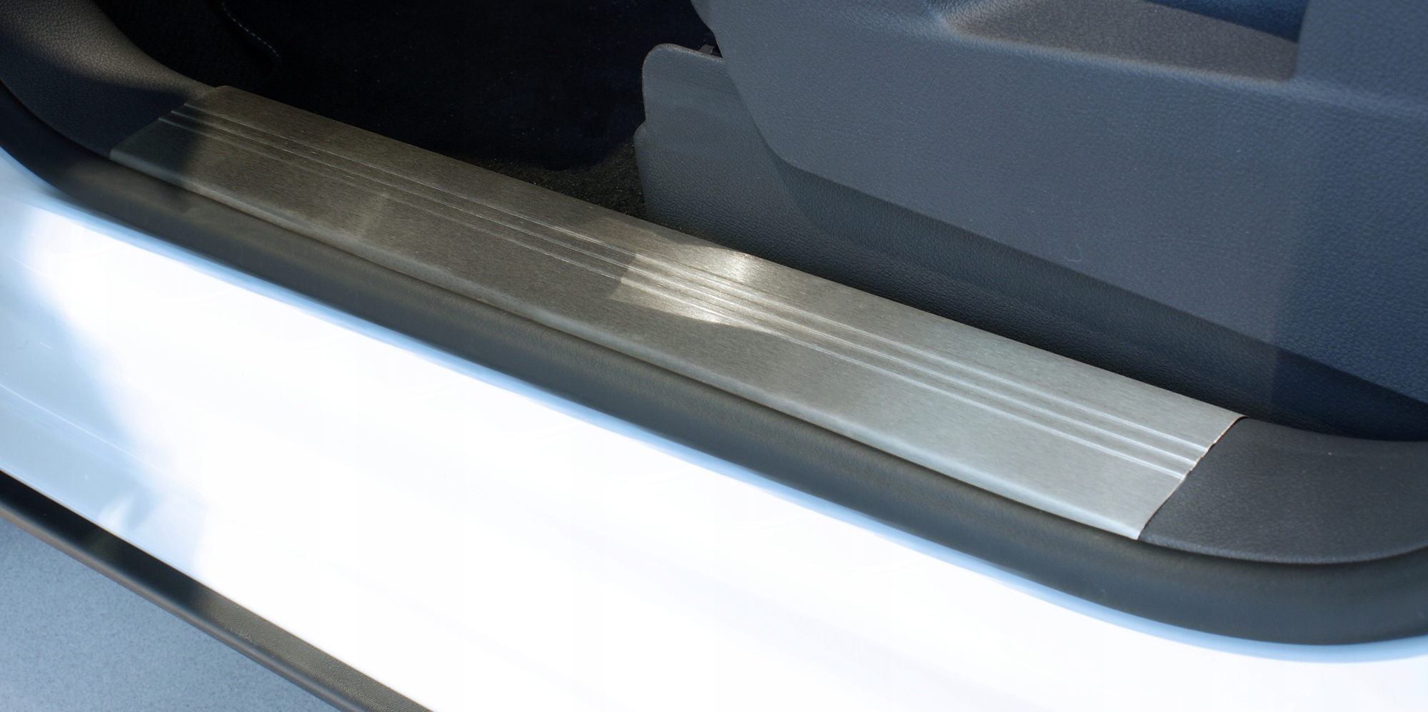 Накладки на пороги изготовлены из нержавеющей стали. Мы гарантируем идеальное соответствие профилю порога.