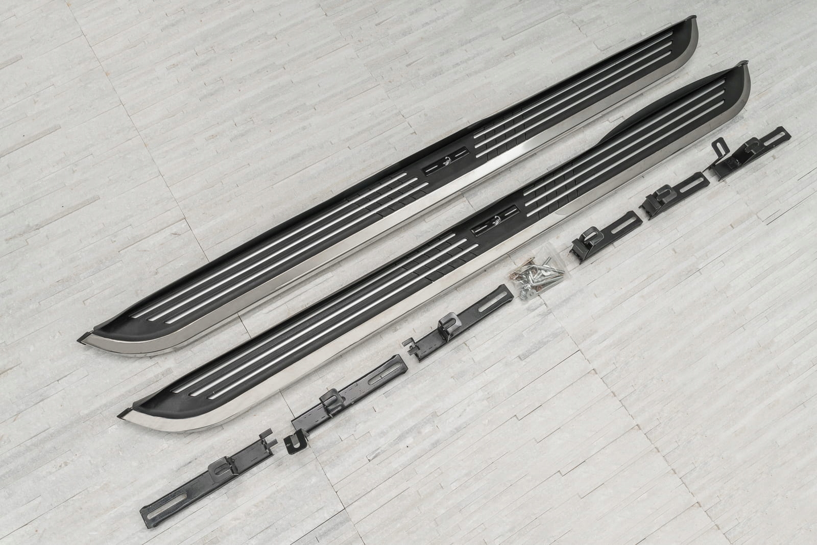 В комплект входит набор боковых подножек (правая и левая), элементы для сборки и инструкция. Пороги монтируются на заводские точки крепления. Установка ступеней не требует сверления дополнительных отверстий! Мы рекомендуем профессиональную сборку в мастерской (по опыту знаем, что лучше всего воспользоваться услугами покрасочной или кузовной мастерской, поскольку на этих заводах чаще всего устанавливают планки, плинтусы и ступени, поэтому сборка этих установок требует b>интуитивной деятельности).