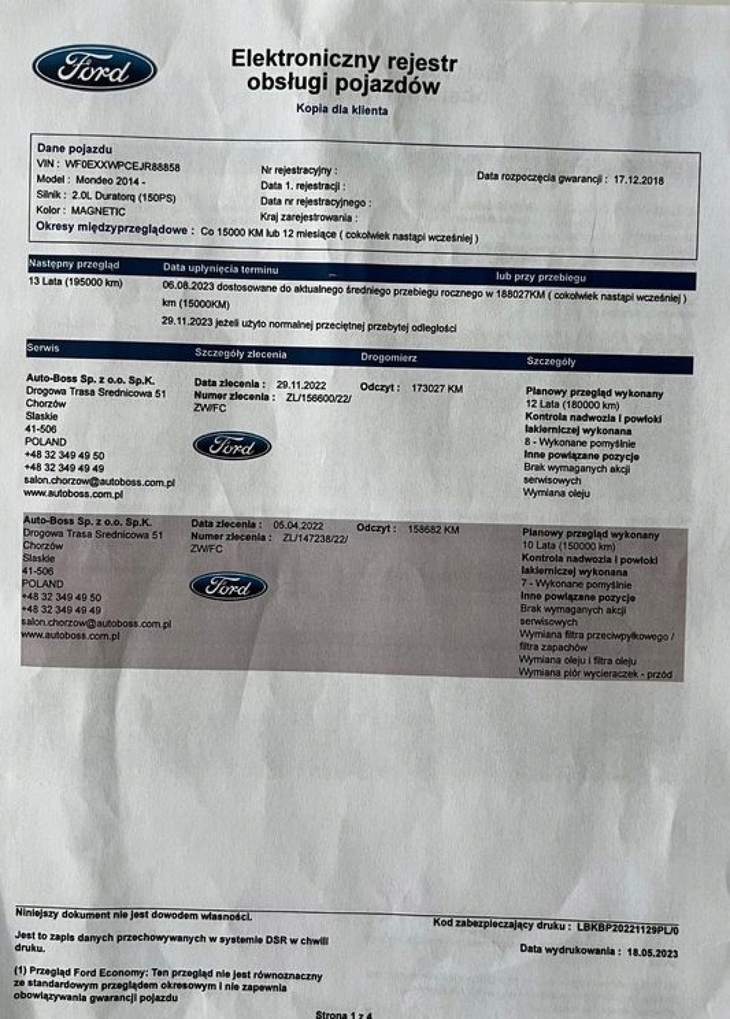 FORD MONDEO V LIFTBACK 2.0 TDCI 150KM 110KW, коробка передач 6-ступенчатая механическая,